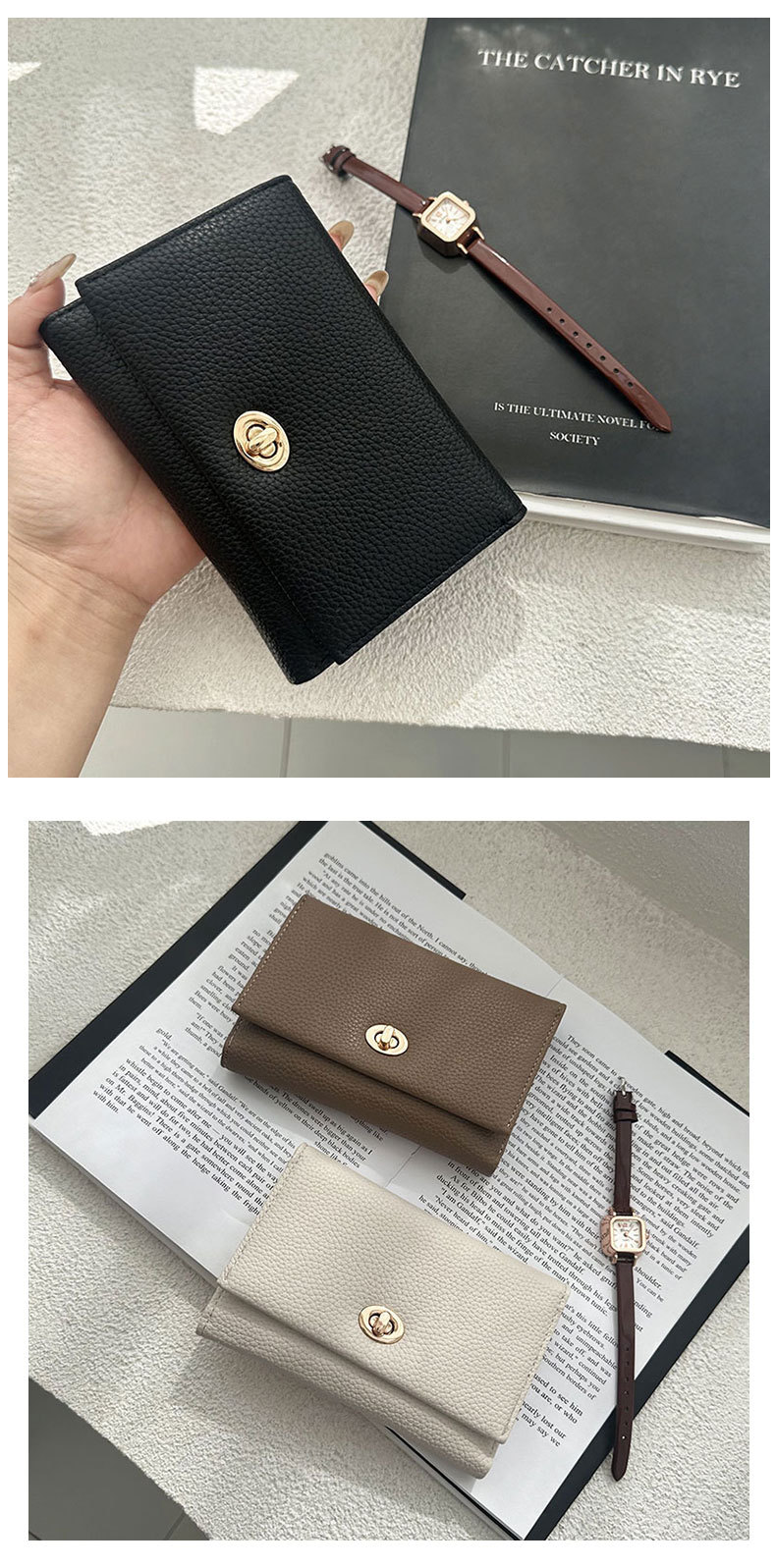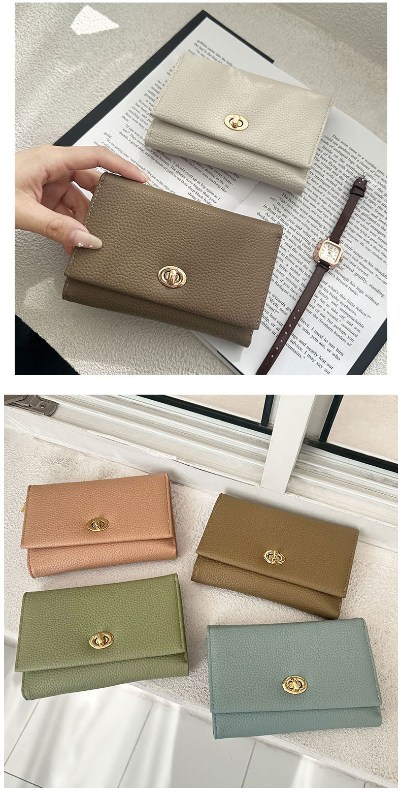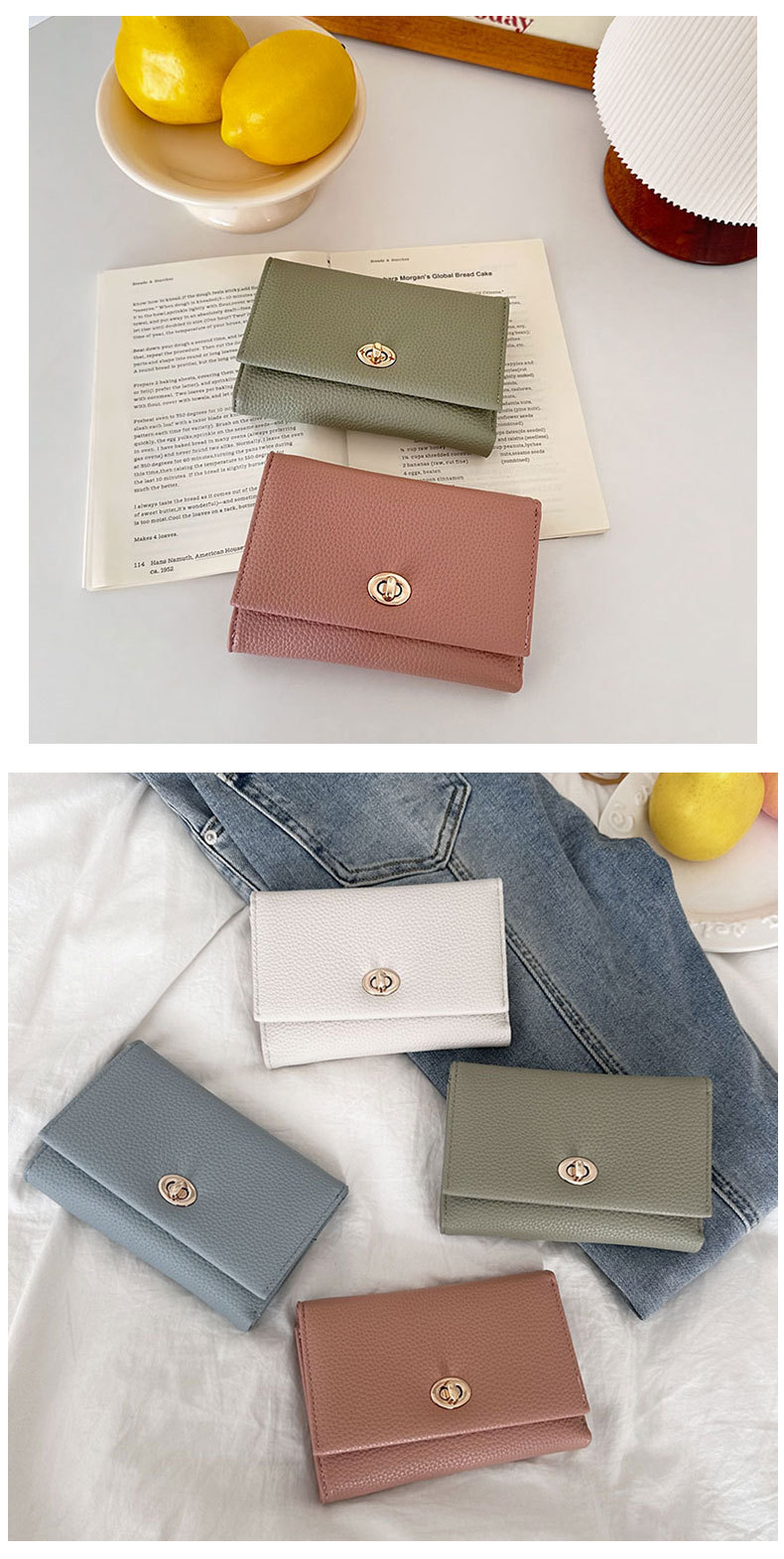 가죽 질감 짧은 여성 지갑 도매 pu 고급 가죽 인터넷 유명 인사 잠금 여성 지갑스토어 가기