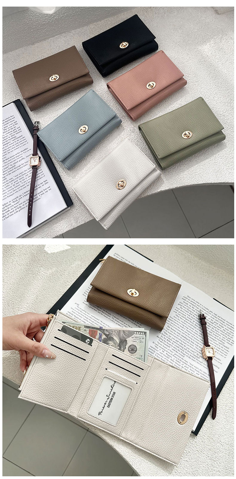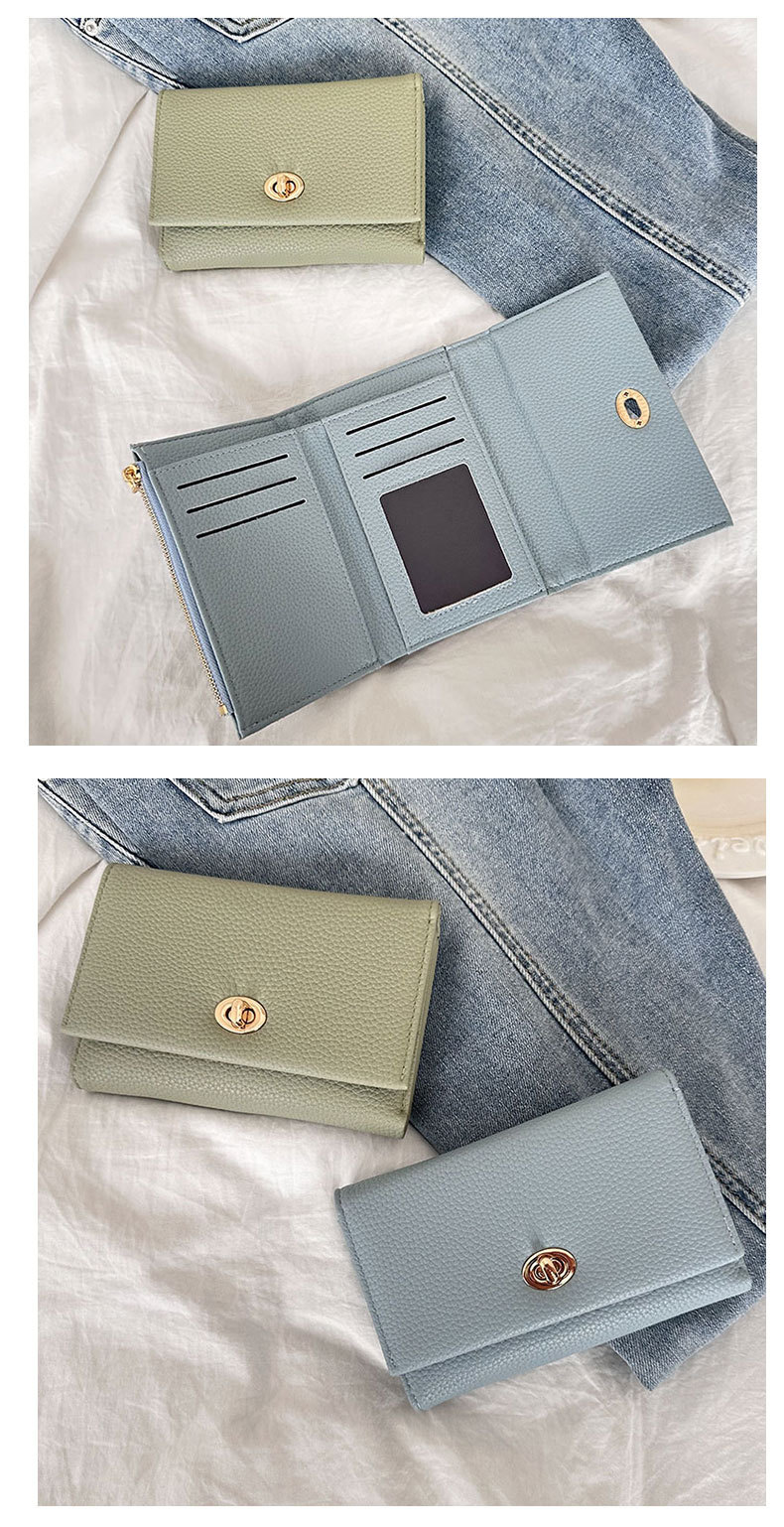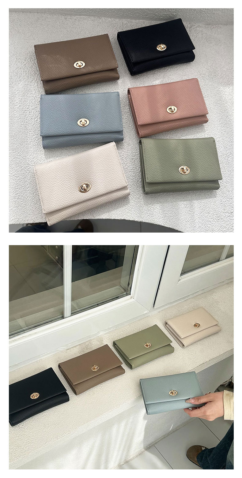 가죽 질감 짧은 여성 지갑 도매 pu 고급 가죽 인터넷 유명 인사 잠금 여성 지갑스토어 가기