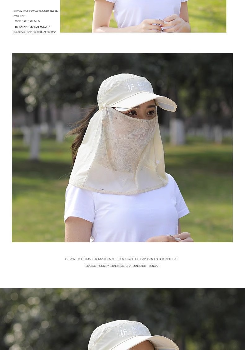 챙이 큰 태양 모자, 여성용 자외선 차단 모자, 여름용 자외선 차단 야외용 베일 모자, 큰 챙