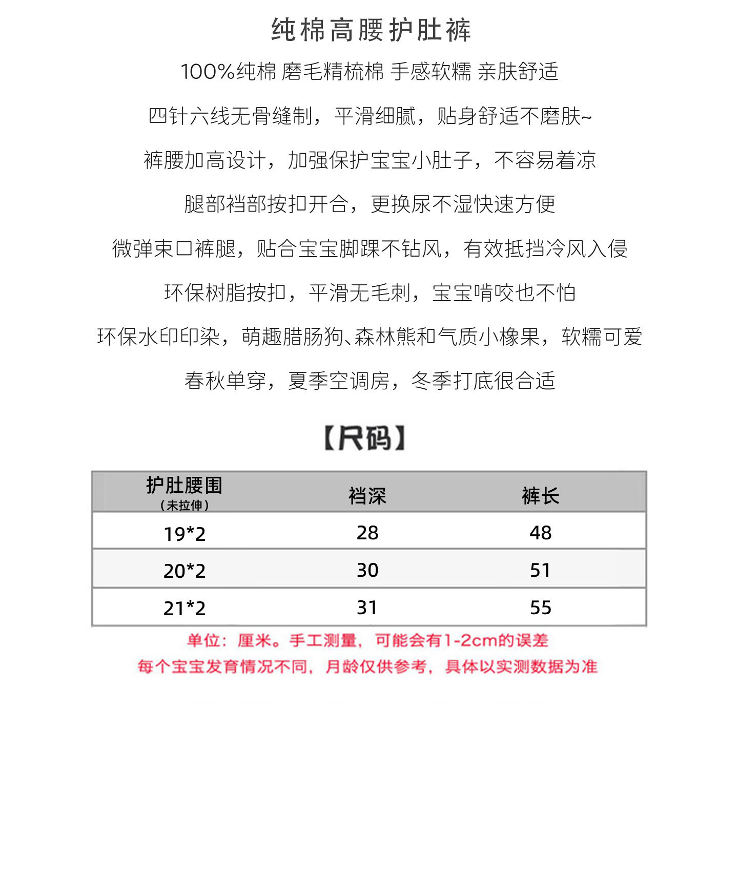 아기 봄과 가을 순수한면 배꼽 둘레 높은 허리 배꼽 보호 바지 어린이 클래스 순수한면 뼈없는 피부 친화적 인 부드러운 바지