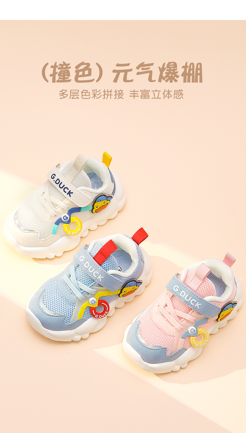 작은 노란색 오리 소녀의 유아 신발 봄과 가을 새로운 메쉬 통기성 어린이 운동화 부드러운 바닥 소년 아기 메쉬 신발스토어 가기