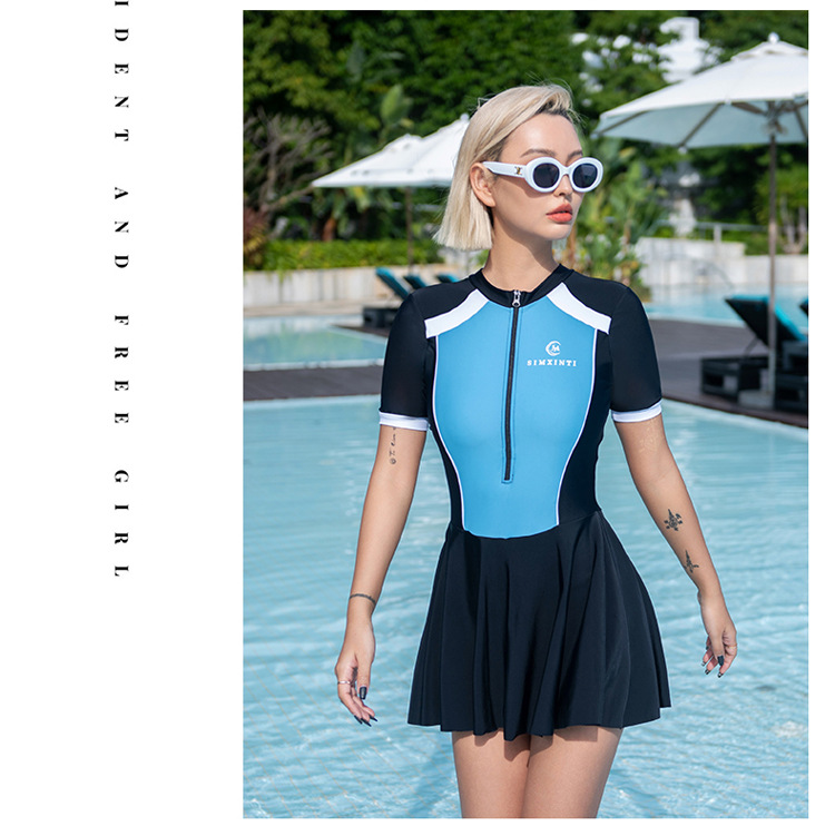 새로운 원피스 스커트 수영복 여성용 배꼽 슬리밍 섹시 작은 가슴 반소매 온천 수영복스토어 가기
