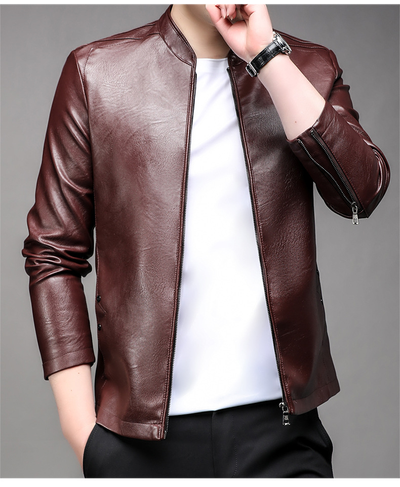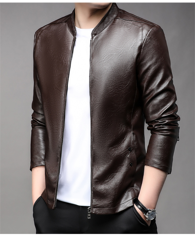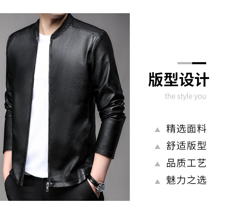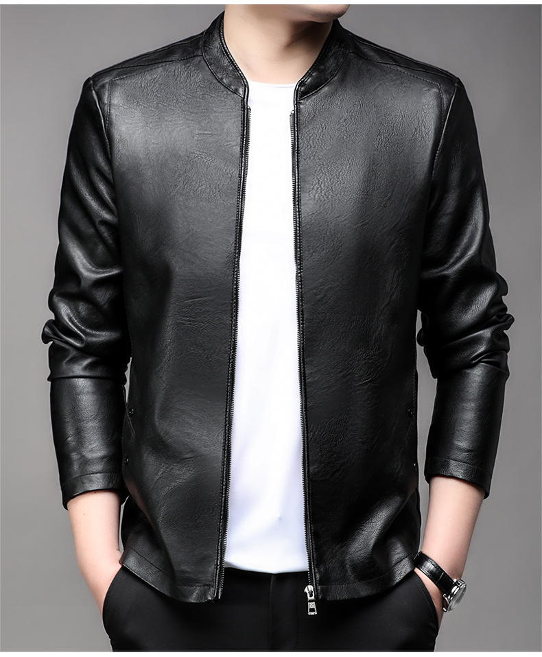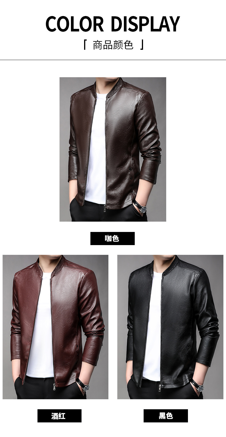 아마존 남성 도매 가죽 자켓 남성 홍콩 스타일 슬림 스탠드 칼라 남성 PU 재킷 트렌디 브랜드 젊은 남성 가죽 자켓스토어 가기