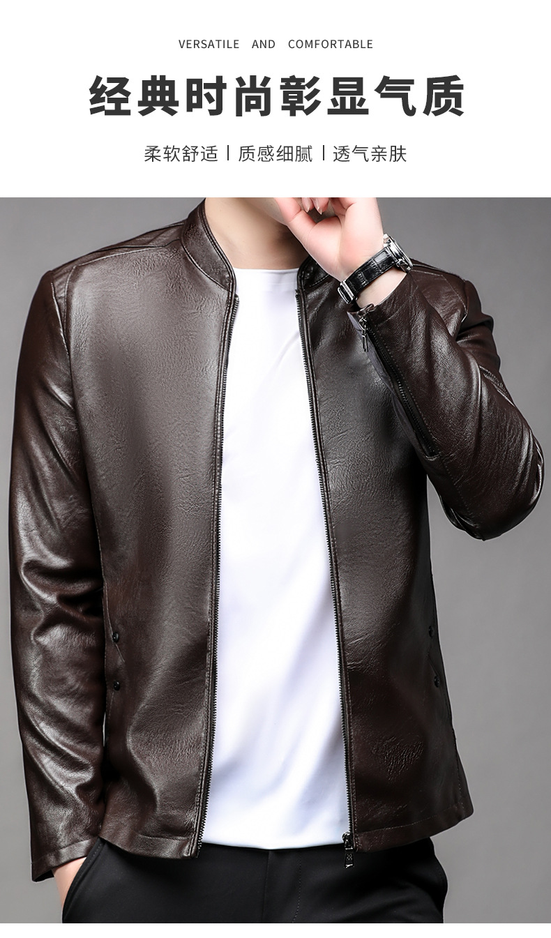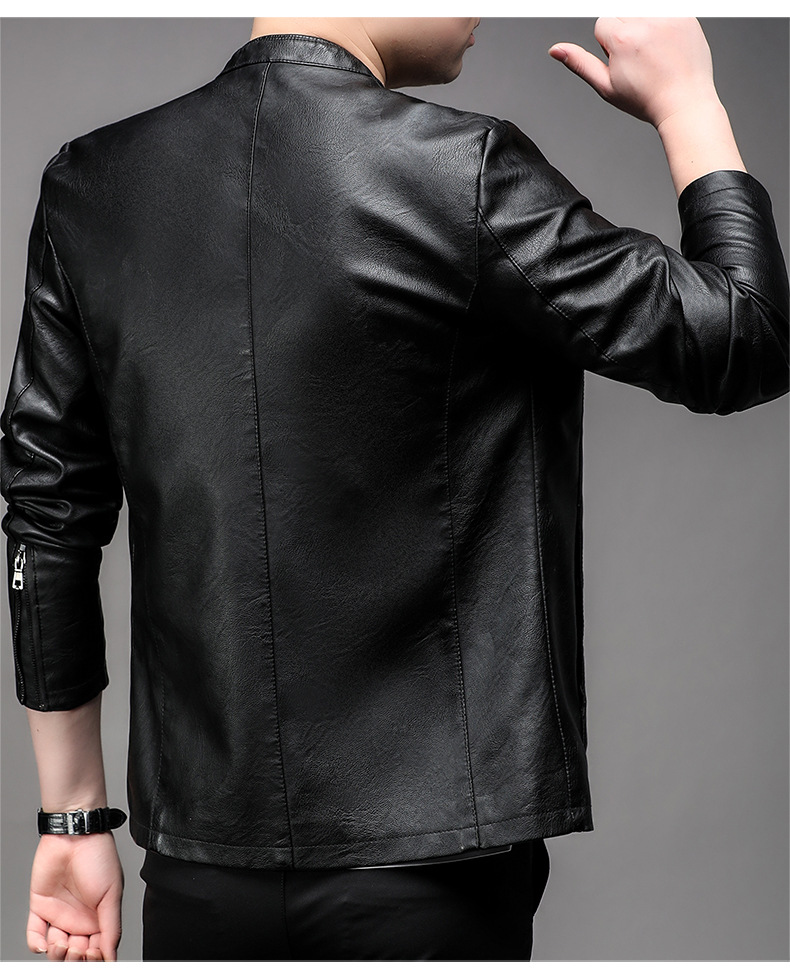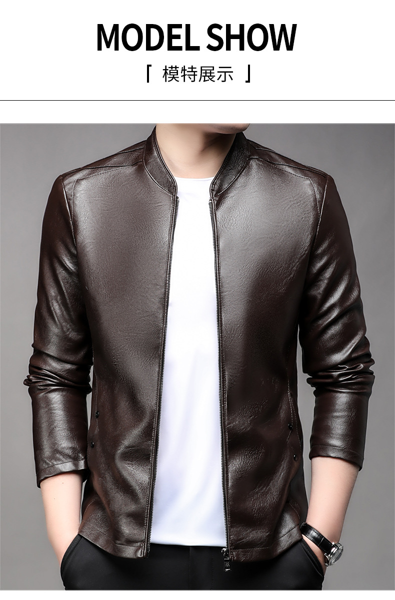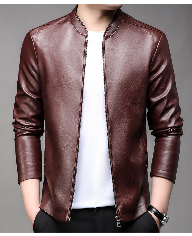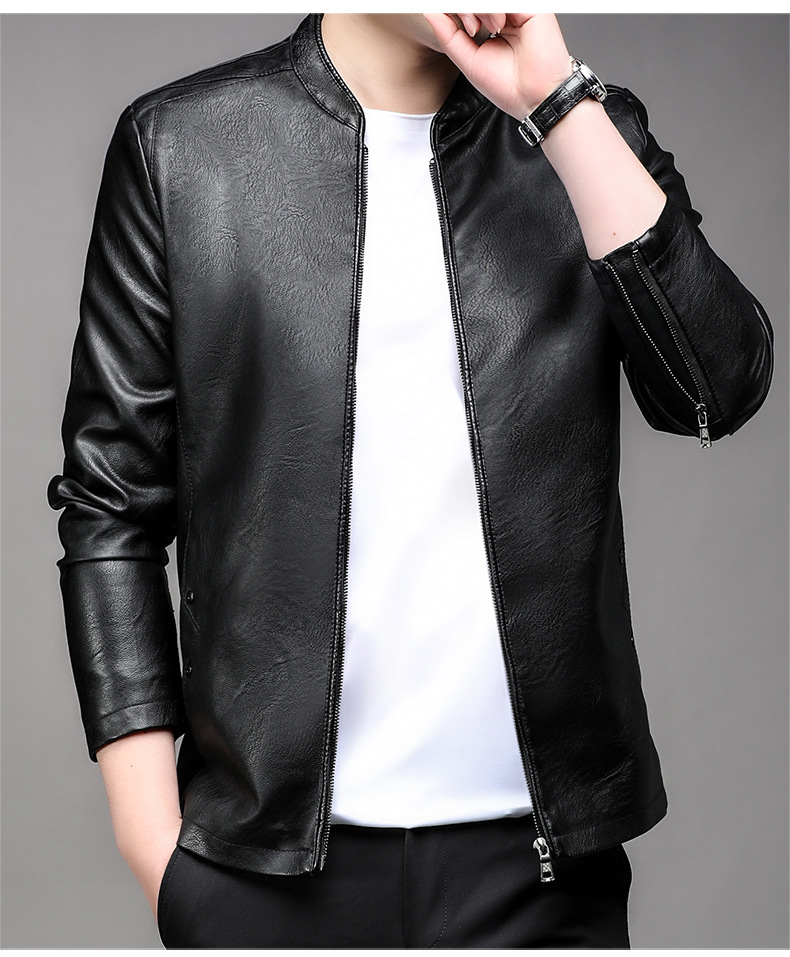 아마존 남성 도매 가죽 자켓 남성 홍콩 스타일 슬림 스탠드 칼라 남성 PU 재킷 트렌디 브랜드 젊은 남성 가죽 자켓스토어 가기