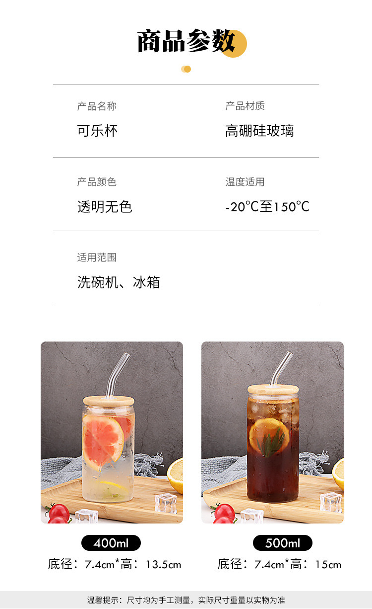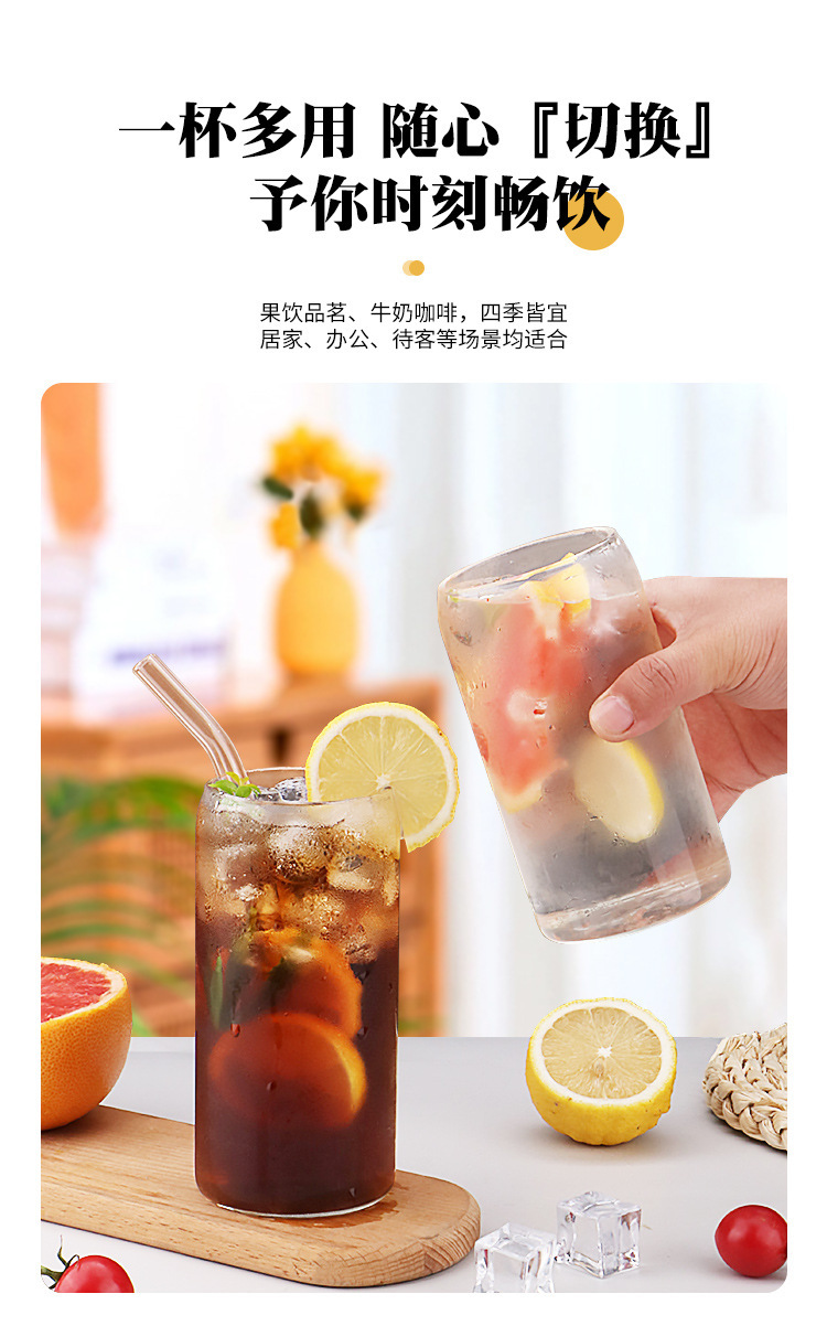 16oz 국경 도매 borosilicate 콜라 컵 높은 모양의 주스 커피 컵 고온 내성 스타일 유리
