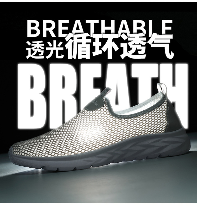 跨境大码46轻便运动鞋男休闲鞋 套脚镂空凉鞋夏季透气网布鞋男鞋