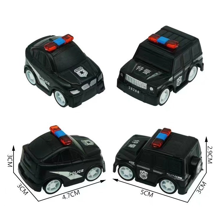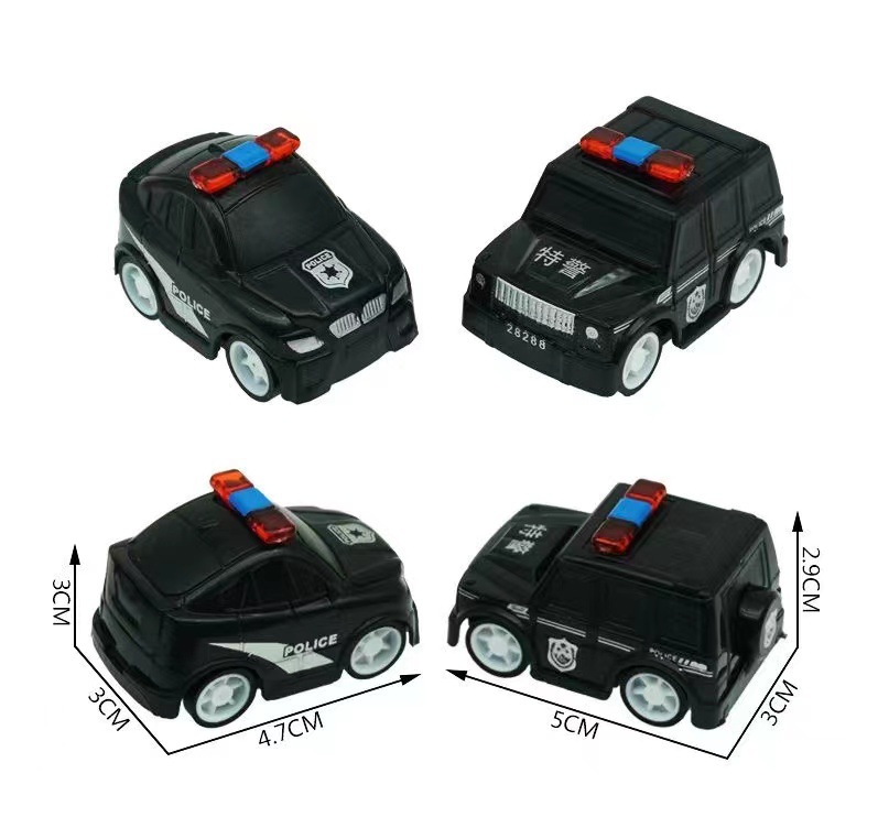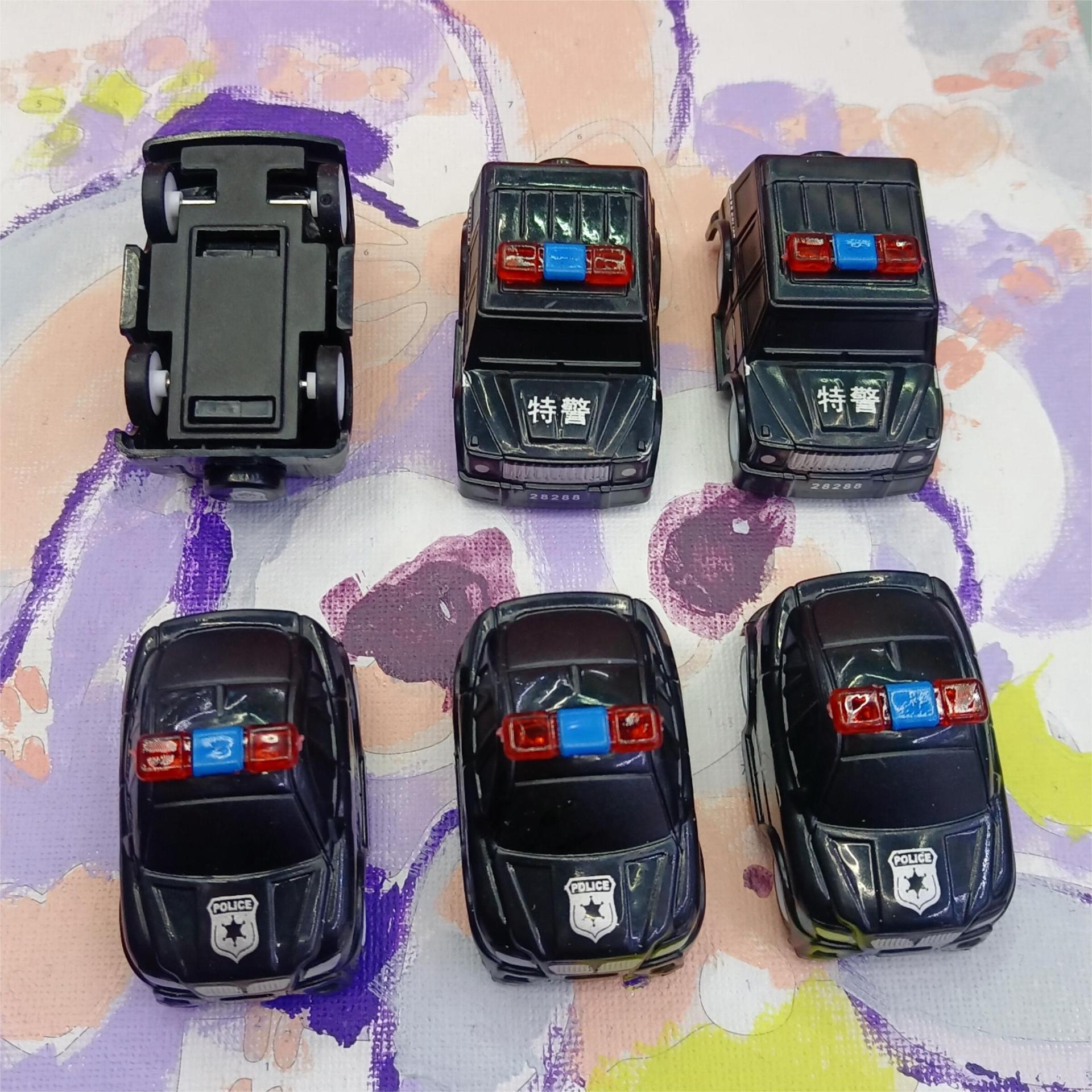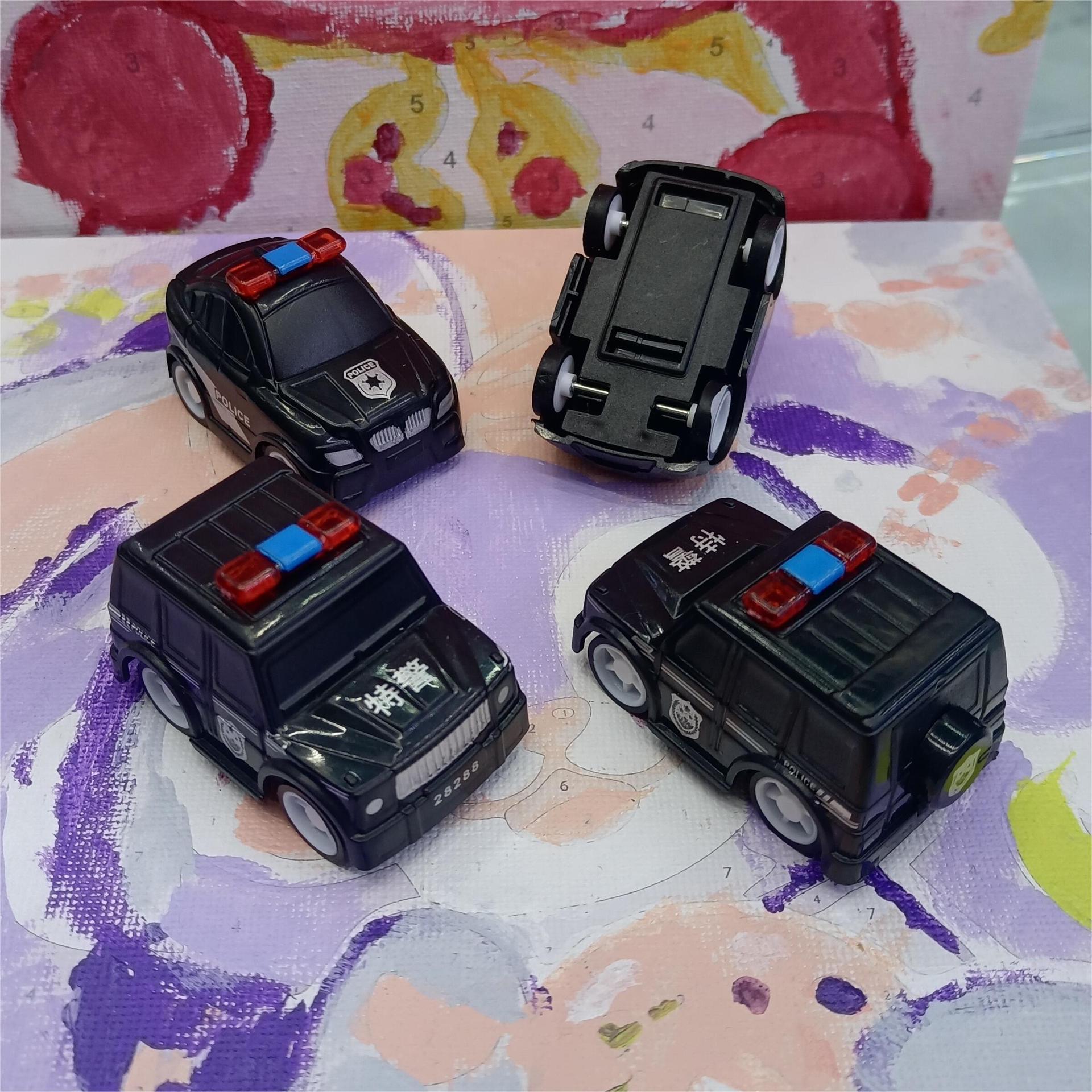 작은 장난감 차를 당겨 멋진 소년 장난감 유치원 활동 경찰차 특수 경찰이 차를 뒤로 당깁니다.스토어 가기