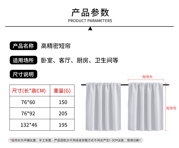 국경 간 음영 단색 고정밀 짧은 커튼 커튼 거실 침실 주방 파티션 커튼 공장 직접 도매