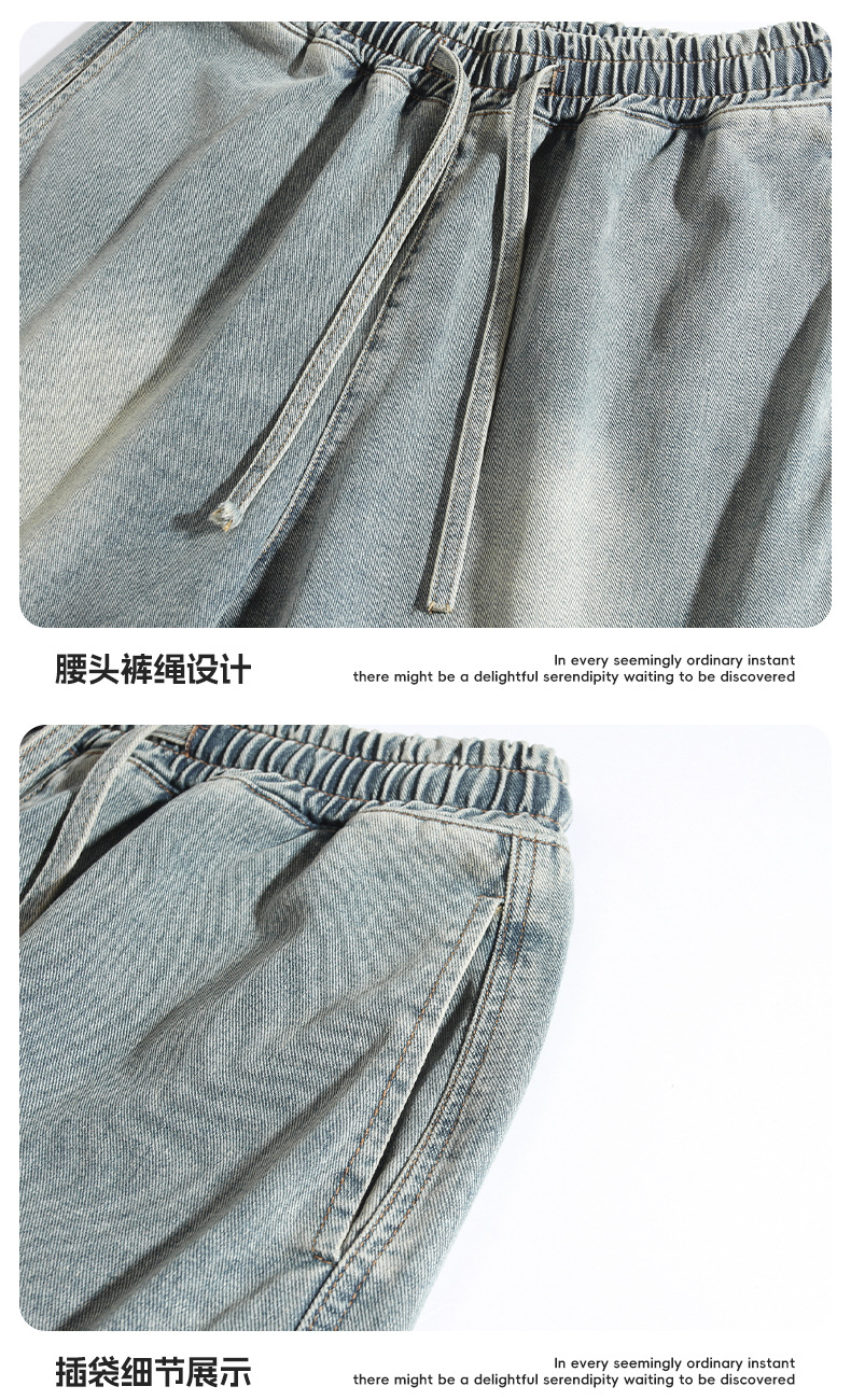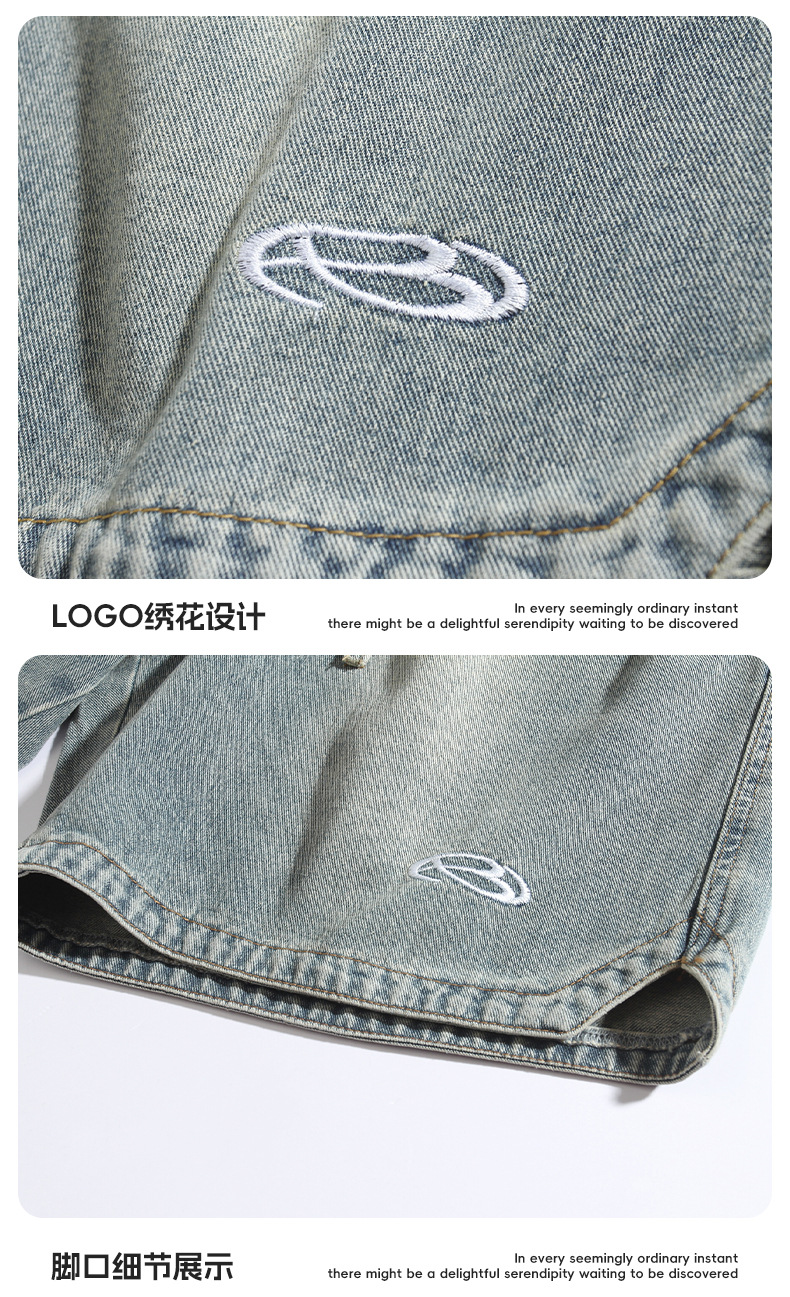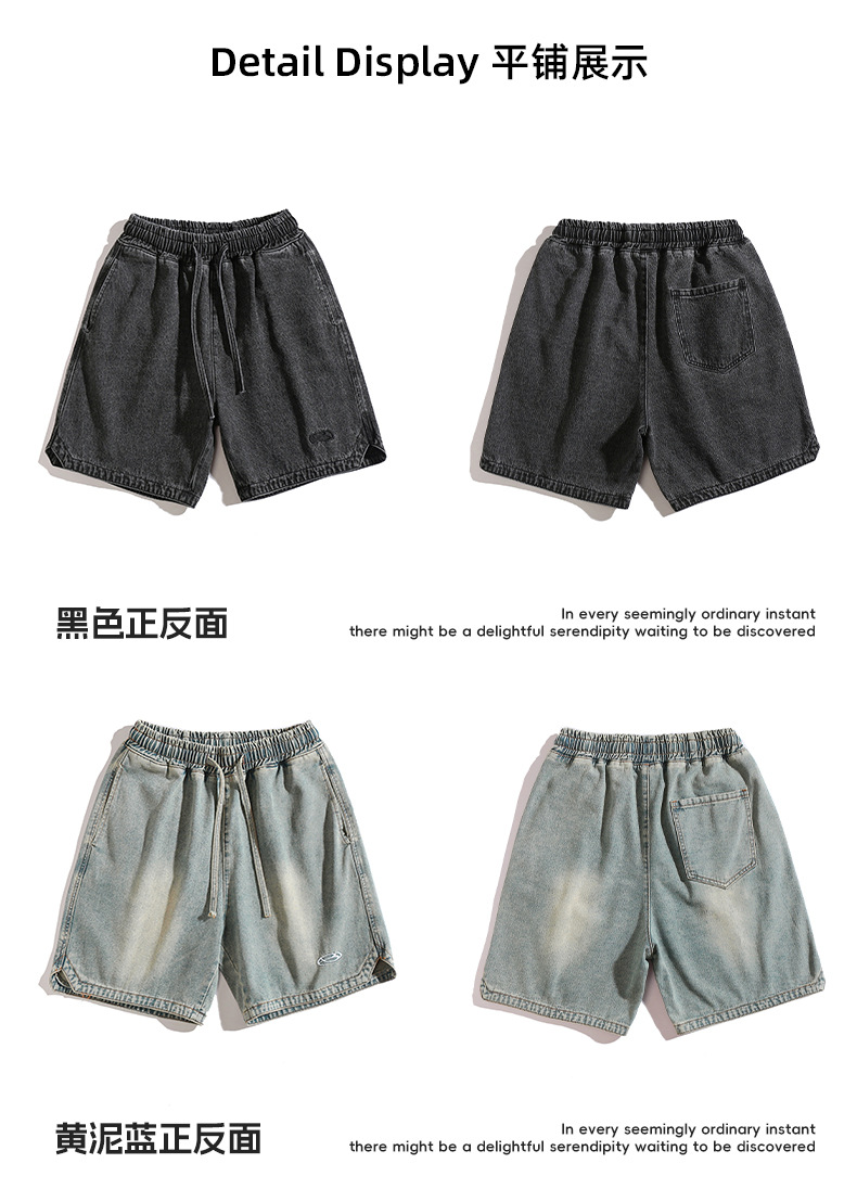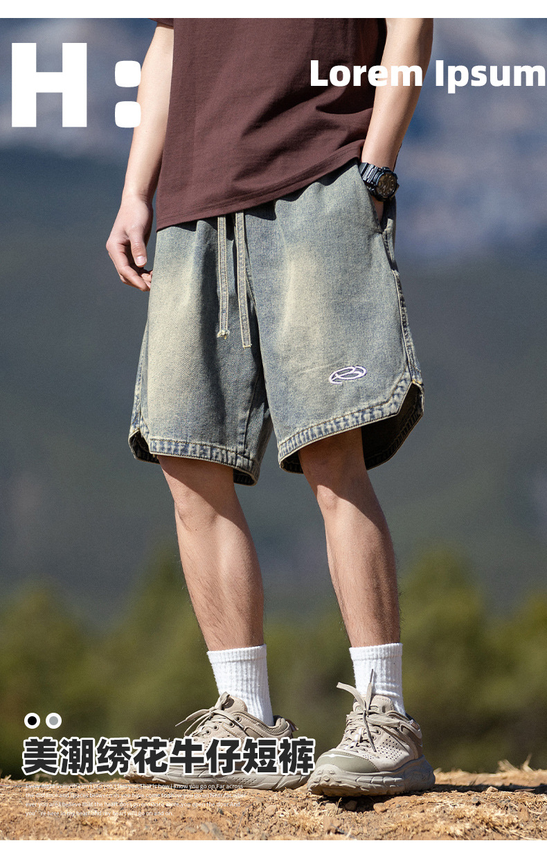 고민 씻은 작업복 데님 반바지 남성 여름 새로운 패션 브랜드 자수 일본 캐주얼 느슨한 드로 스트링 반바지스토어 가기