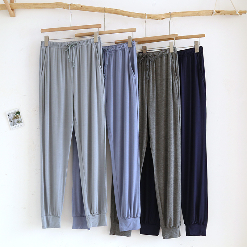새로운 파자마 바지 남성 캐주얼 홈 모기 방지 바지 성인 얇은 모달면 홈웨어 느슨한 타이트한 바지스토어 가기