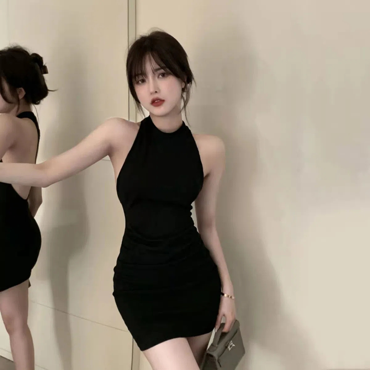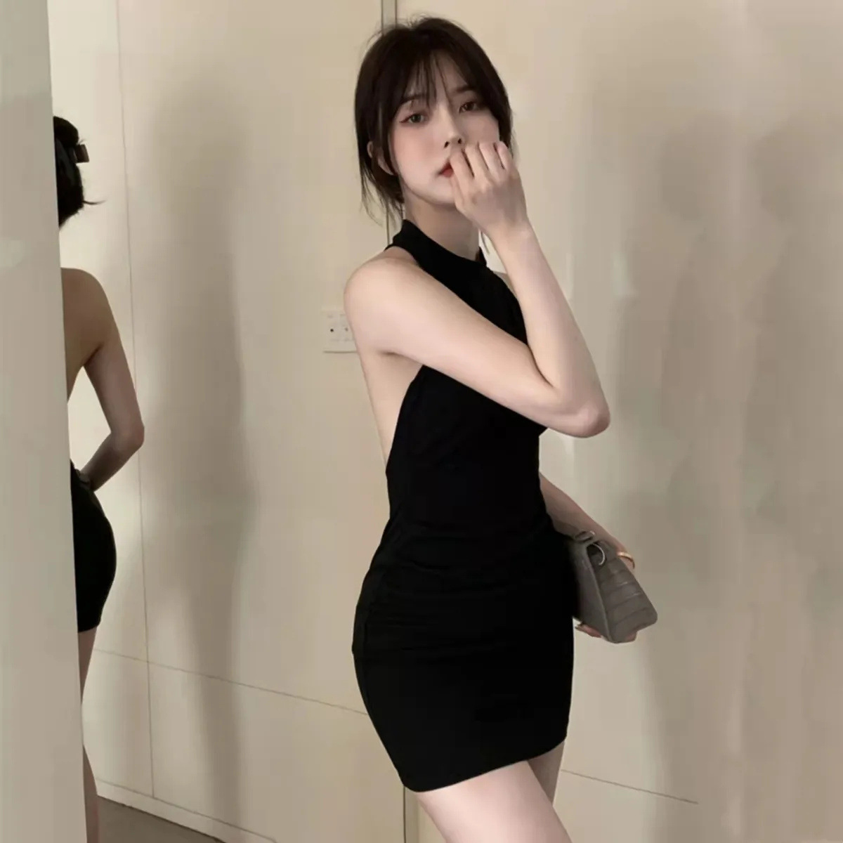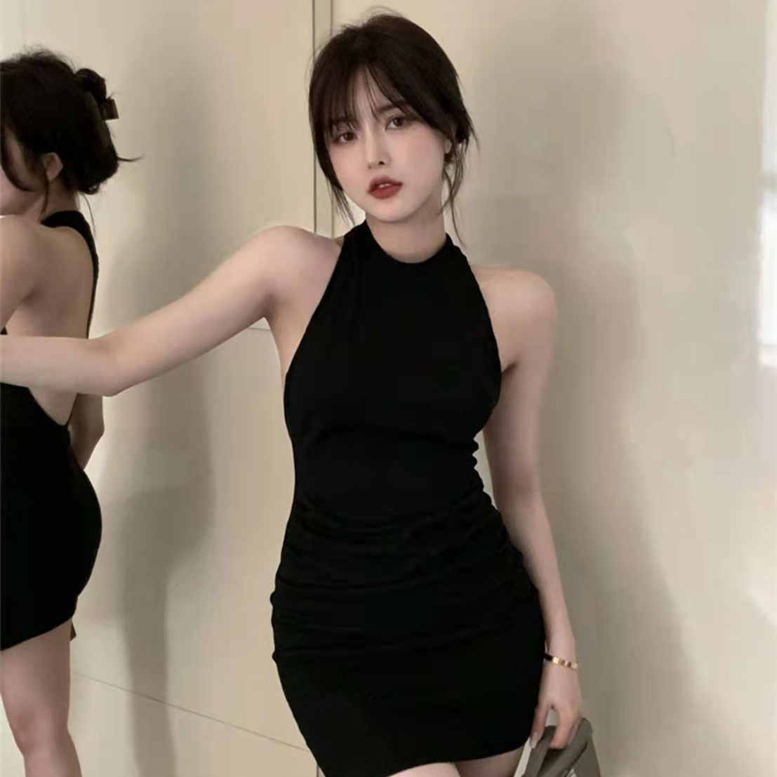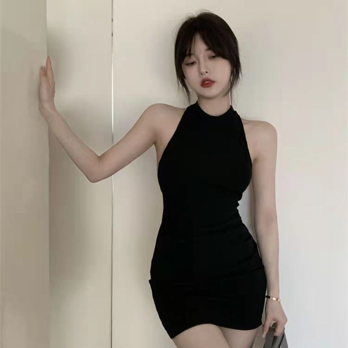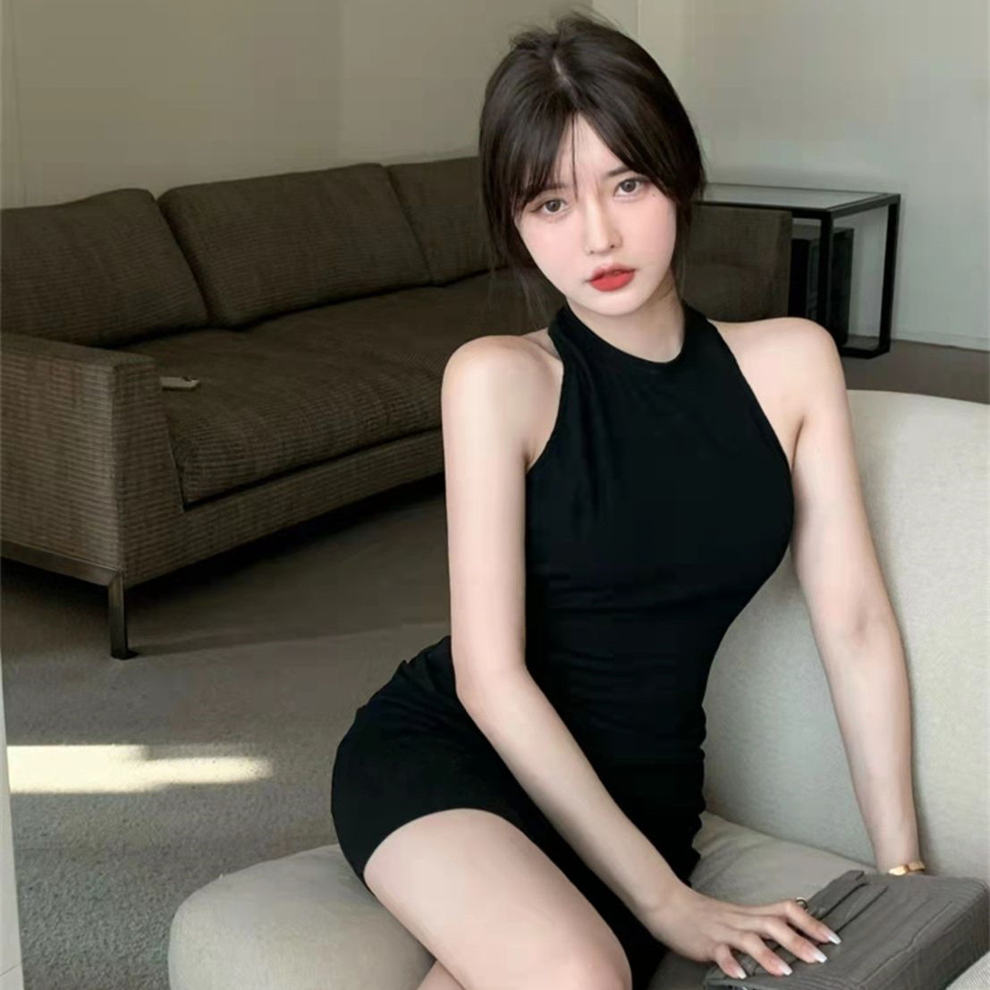백리스 섹시한 핫 소녀 민소매 고삐 엉덩이 치마 여름 새로운 타이트 슬리밍 순수 욕망 점프 수트 스커트 여성 패션스토어 가기