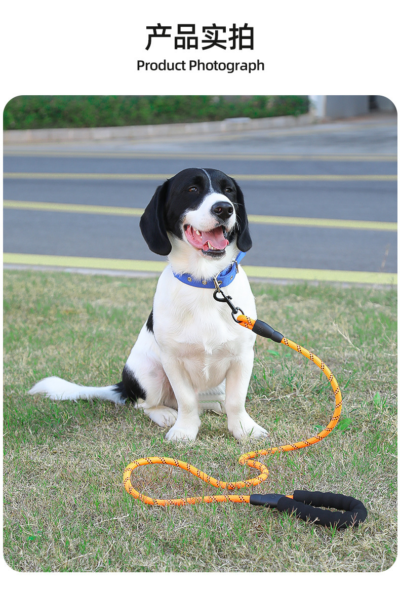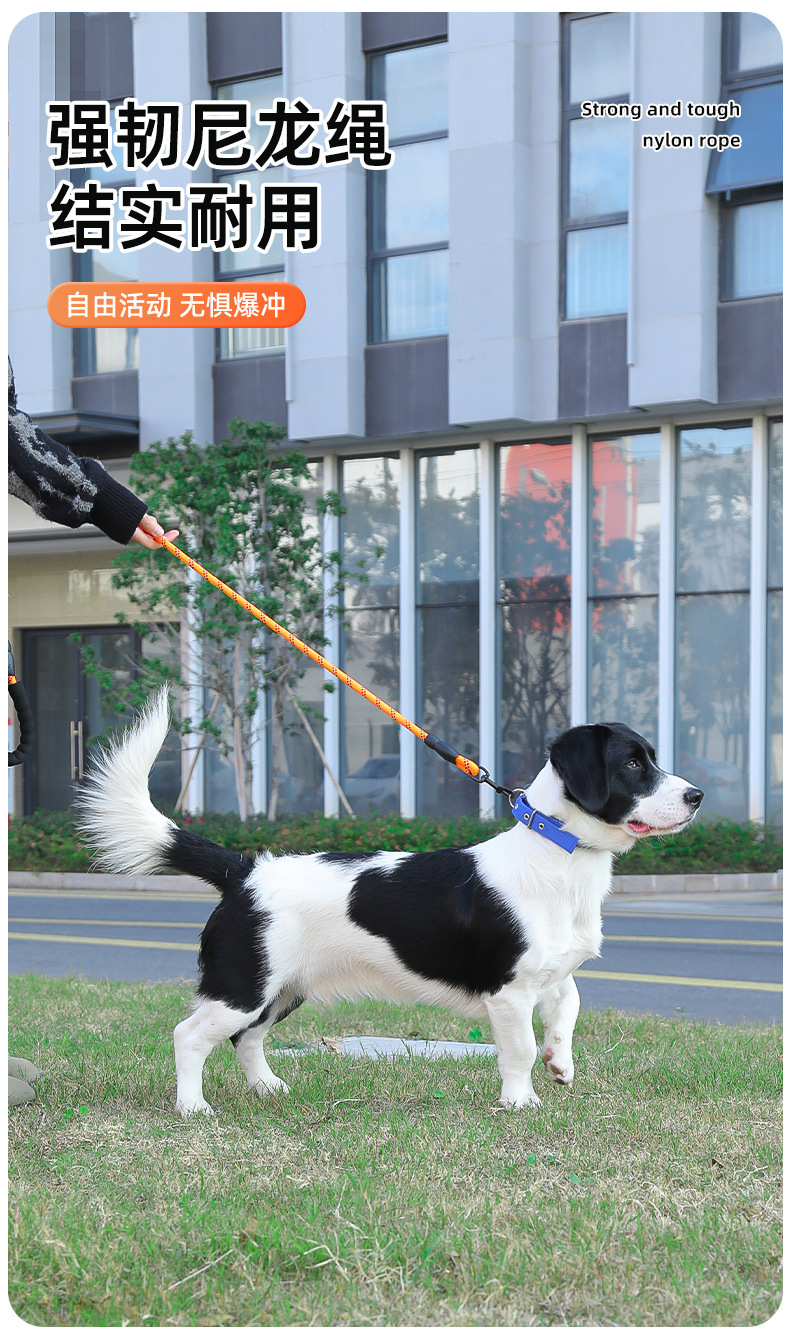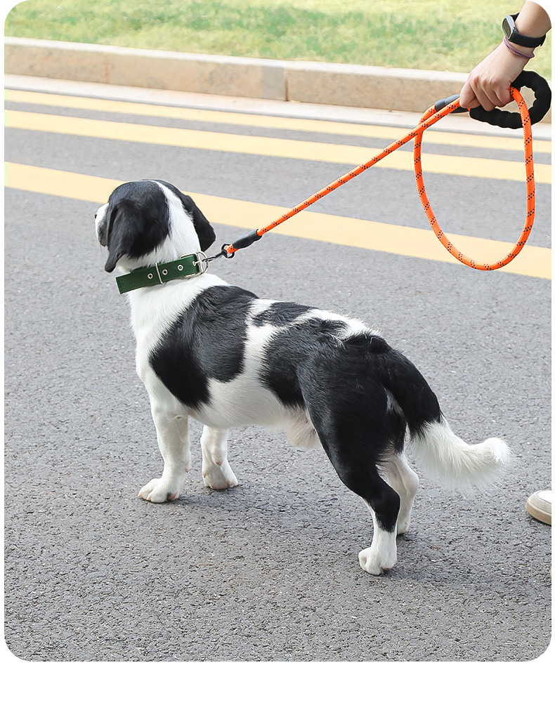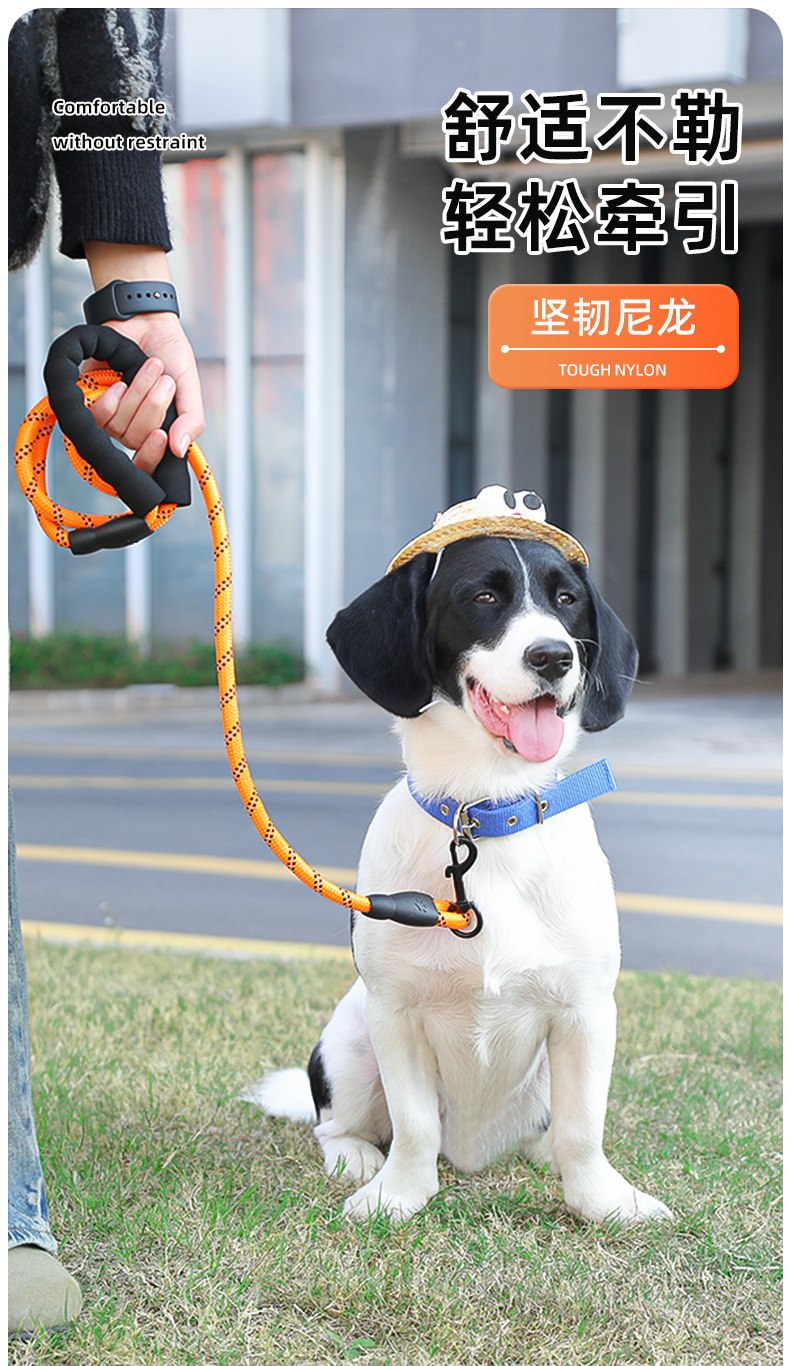 나일론 개목줄, 중대형견용, 내구성, 반사 기능, 원형 로프, 폭발 방지, 산책용 개목줄, 폼 손잡이, 견인줄