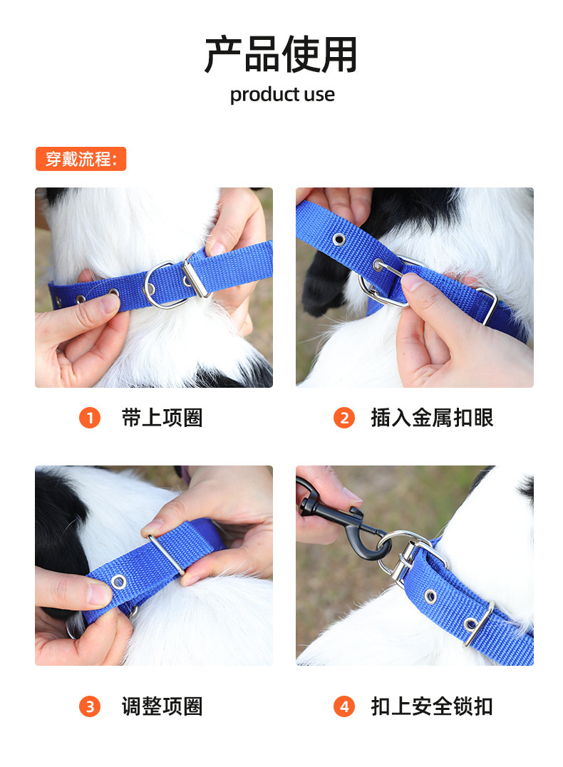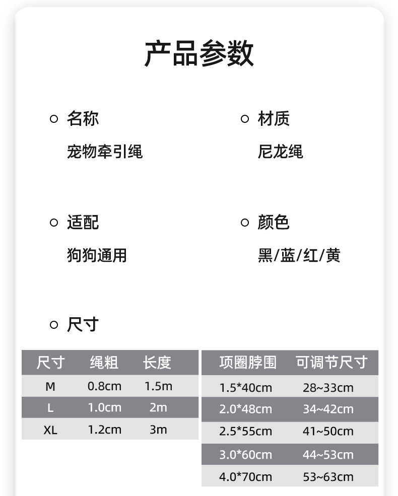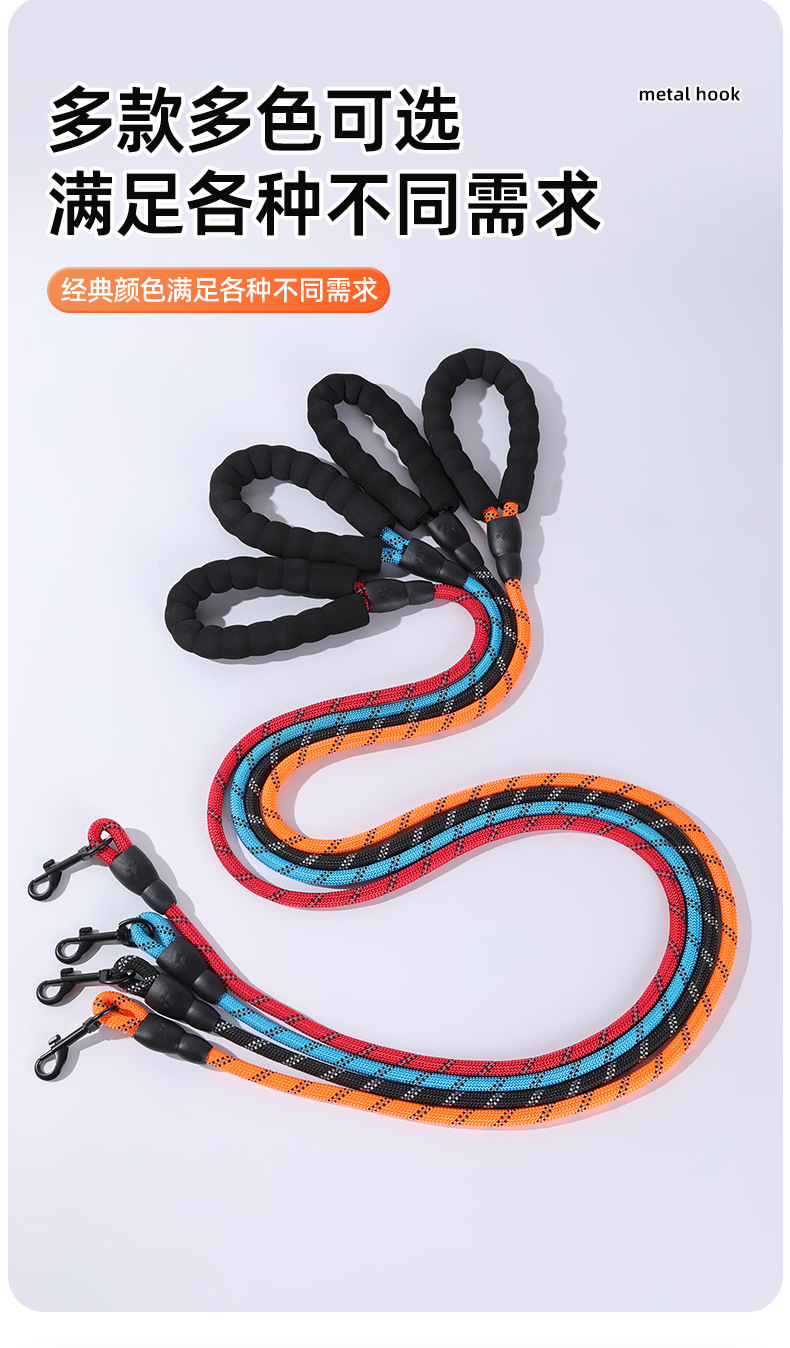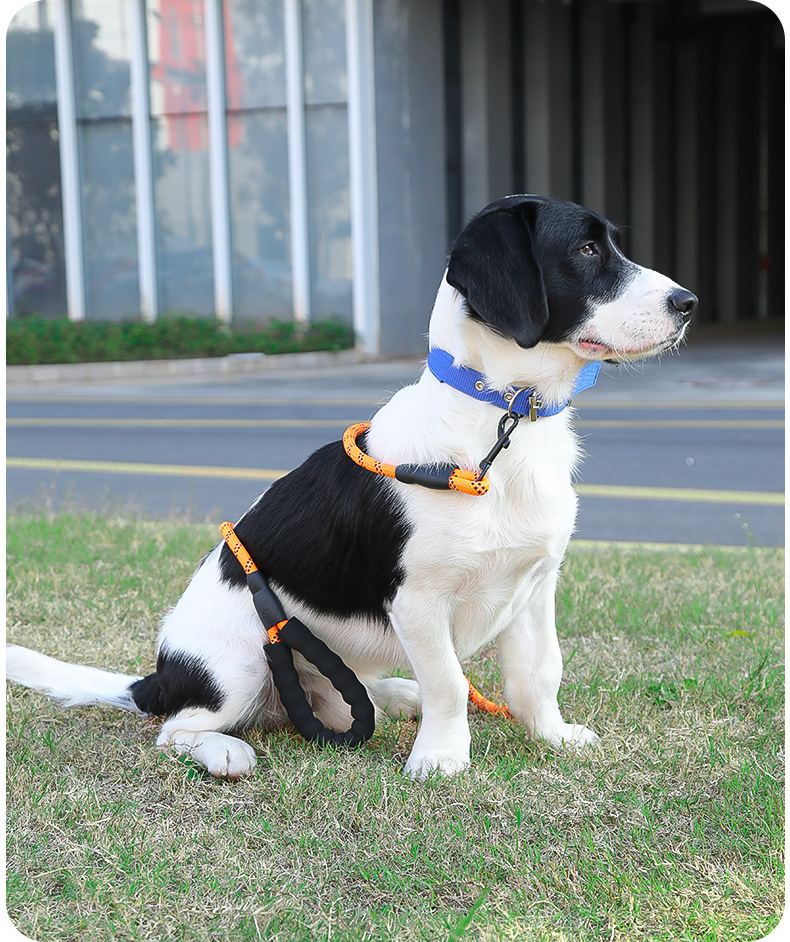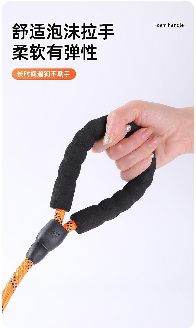 나일론 개목줄, 중대형견용, 내구성, 반사 기능, 원형 로프, 폭발 방지, 산책용 개목줄, 폼 손잡이, 견인줄