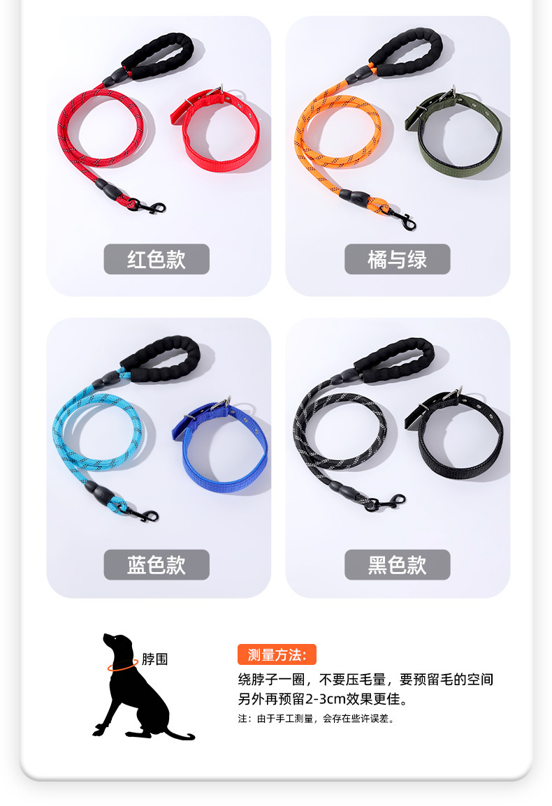 나일론 개목줄, 중대형견용, 내구성, 반사 기능, 원형 로프, 폭발 방지, 산책용 개목줄, 폼 손잡이, 견인줄스토어 가기