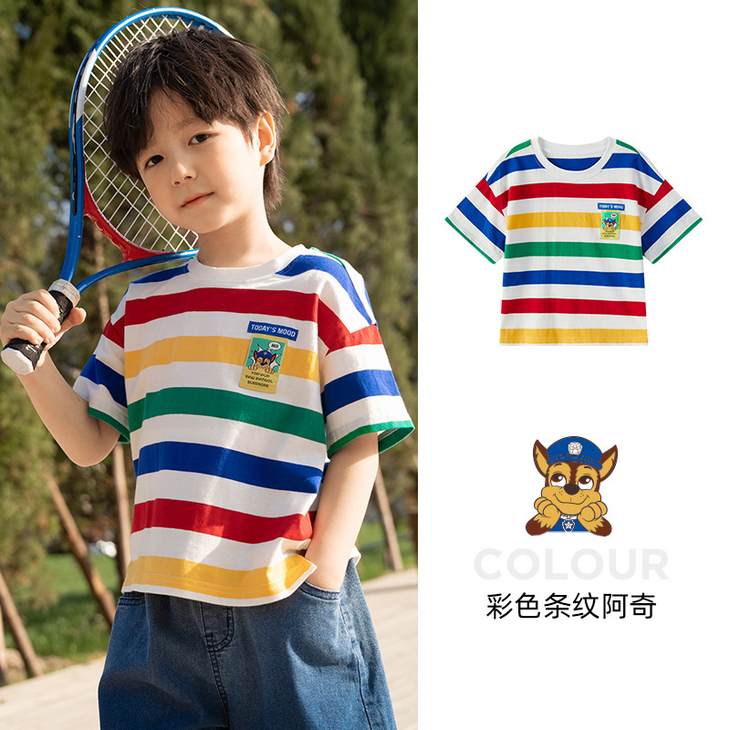Paw Patrol 소년 반팔 티셔츠 여름 어린이 면화 탑 여름 소년 반팔 바닥 셔츠 재고 있음스토어 가기