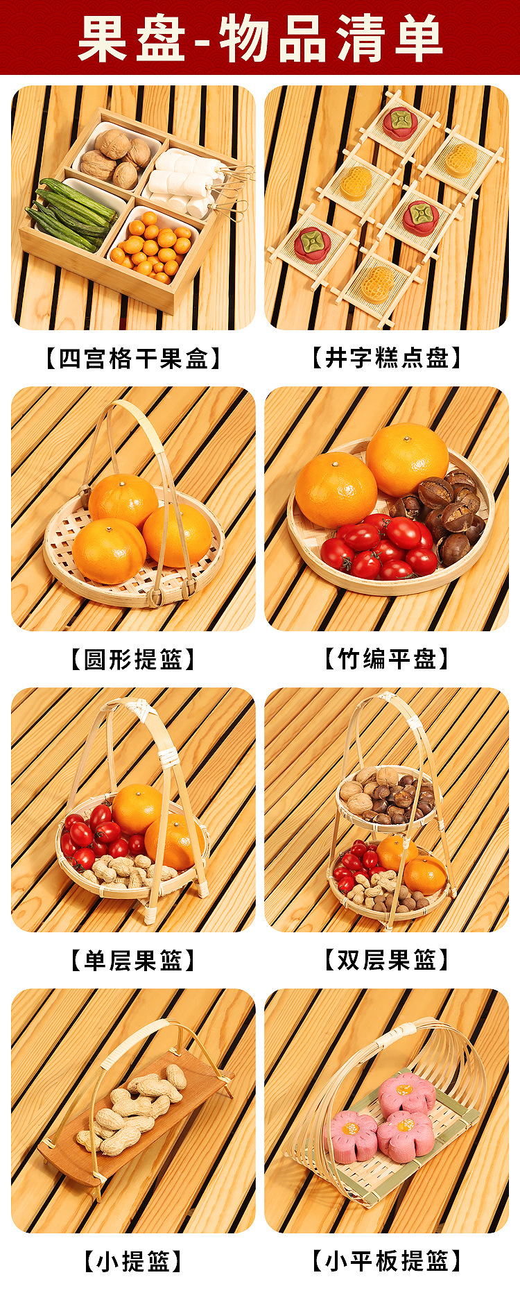 스토브 차-끓는 과일 플레이트 액세서리 장식 가전 전체 다과 장식 말린 과일 플레이트 Jiugongge 트레이 대나무 구운 우유스토어 가기