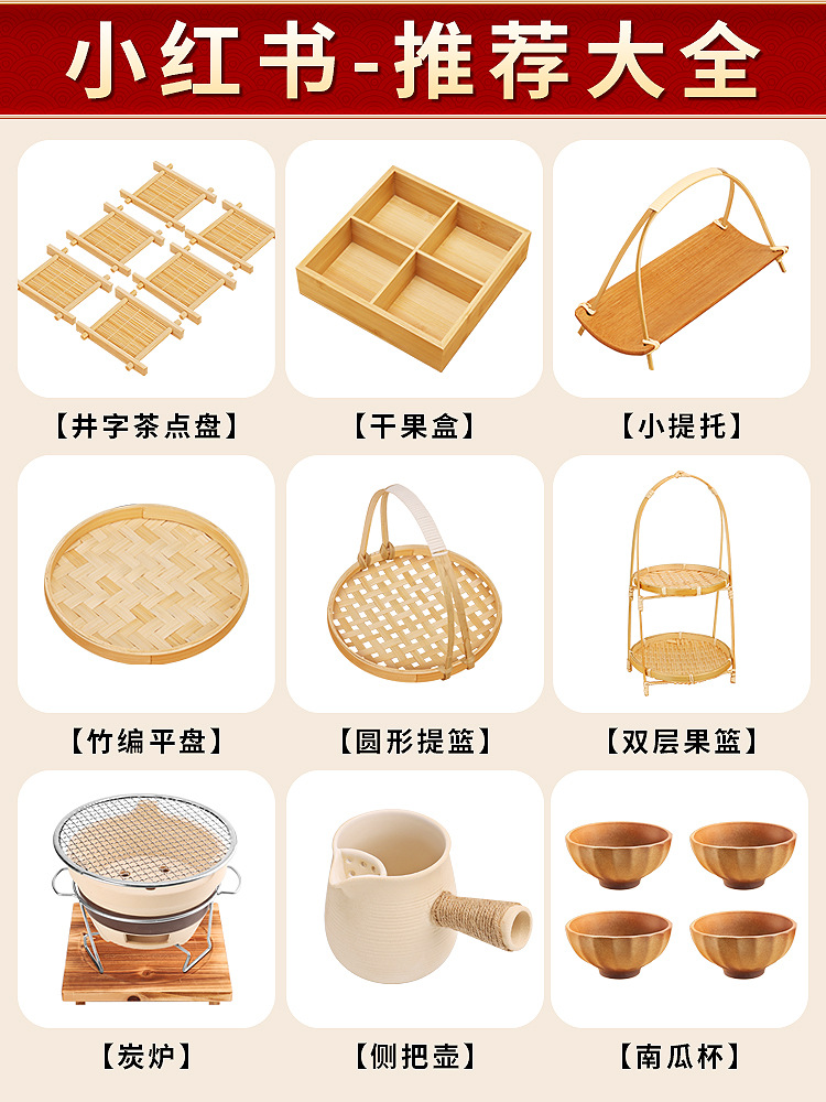 스토브 차-끓는 과일 플레이트 액세서리 장식 가전 전체 다과 장식 말린 과일 플레이트 Jiugongge 트레이 대나무 구운 우유