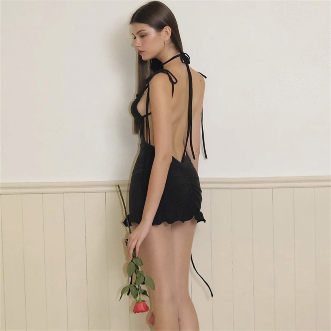 2024 유럽과 미국의 폭발 새로운 국경 원피스 여름 하이 엔드 Y2K 섹시 백리스 레이스 업 스파이스 힙합 스커트스토어 가기
