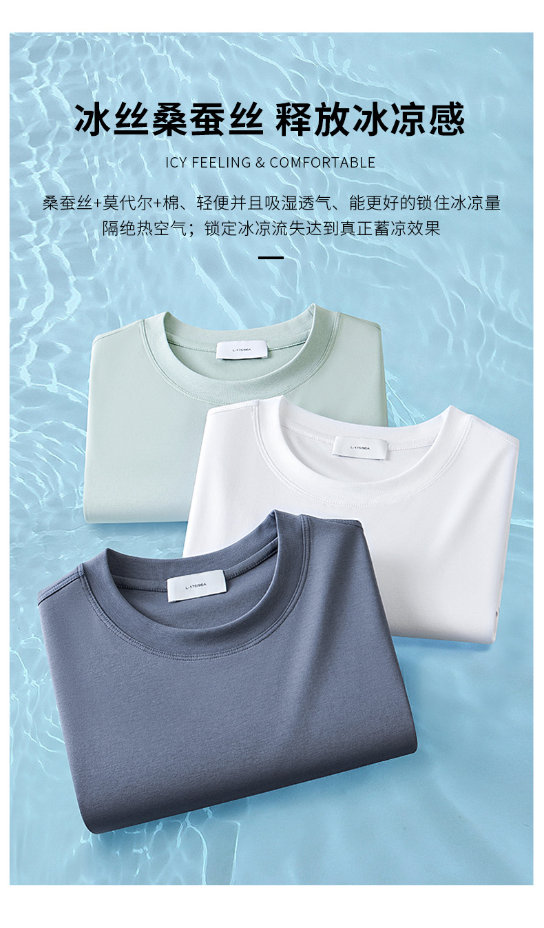 7A 항균! 액체 암모니아 얼음 산소 멀베리 실크 반팔 티셔츠 남성용 얼음 실크 시원한 느낌의 가벼운 럭셔리 남성복! 카운터 품질 티셔츠