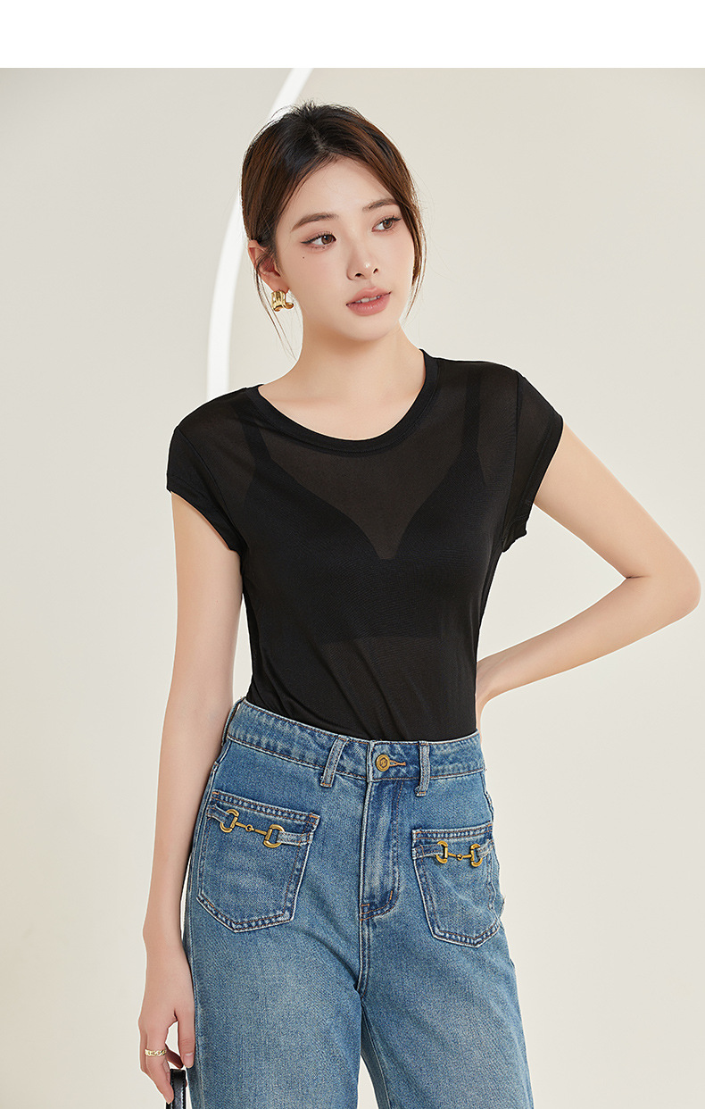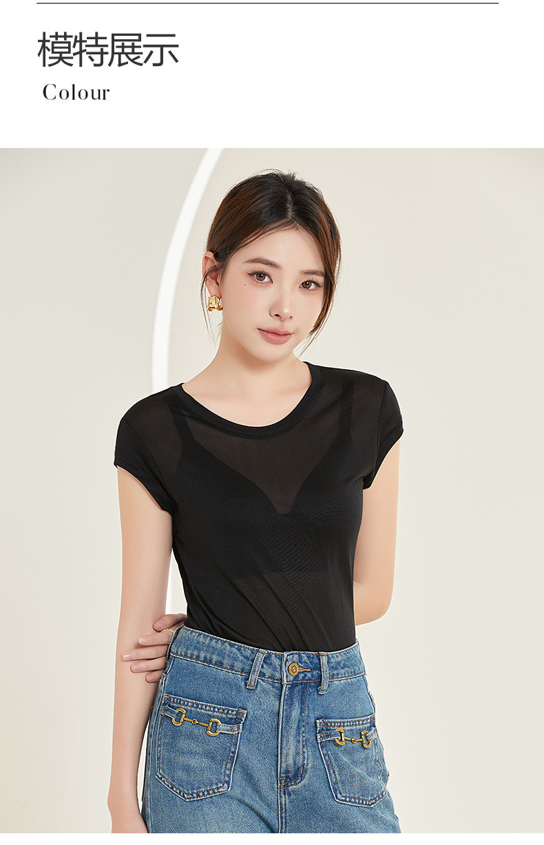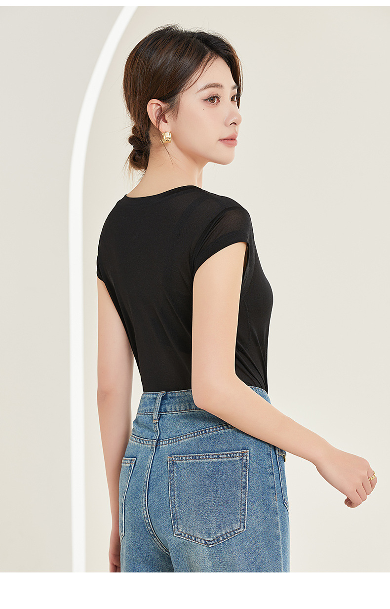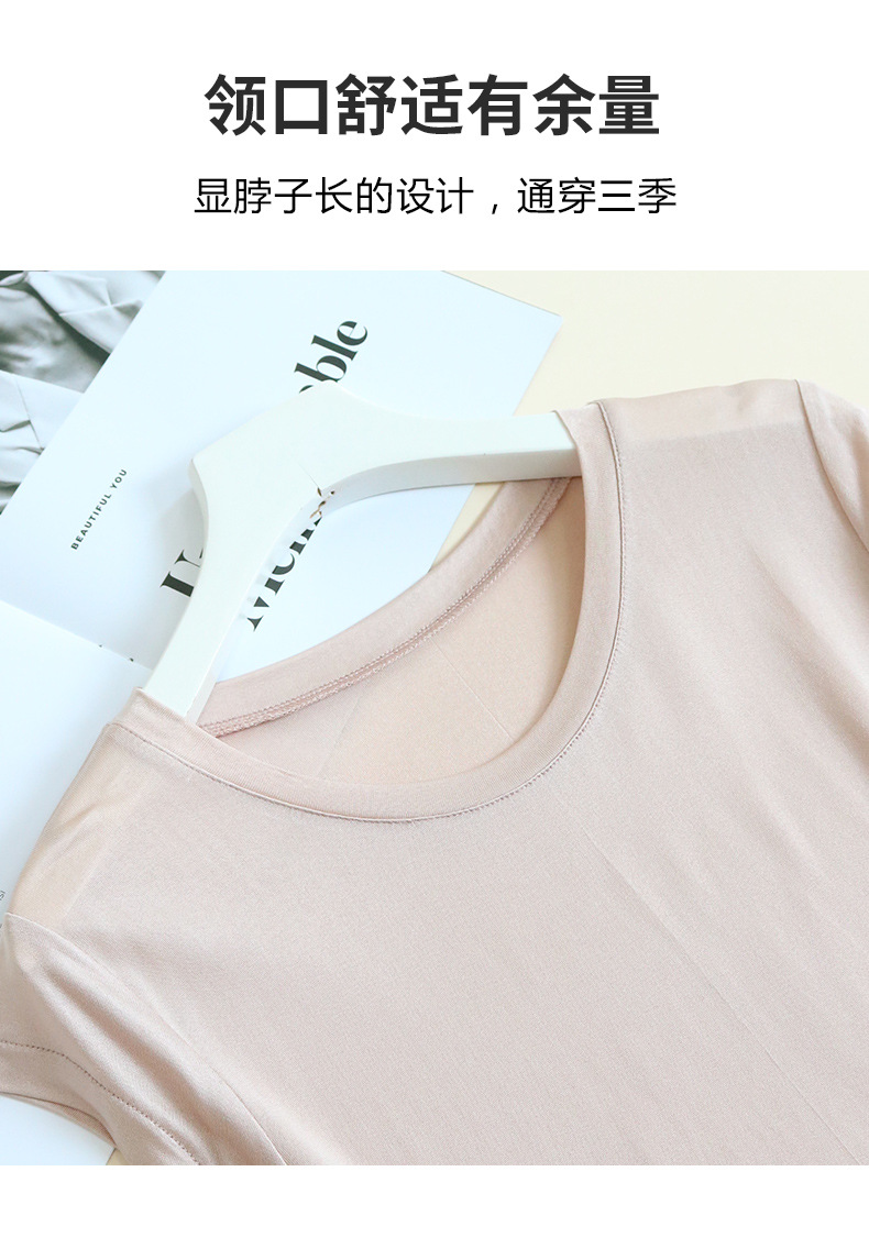 Tangge 봄/여름 실크 원슬리브 바닥 셔츠 여성 홈 착용 뽕나무 실크 둥근 목 반팔 티셔츠 겨드랑이 땀 흡수 층