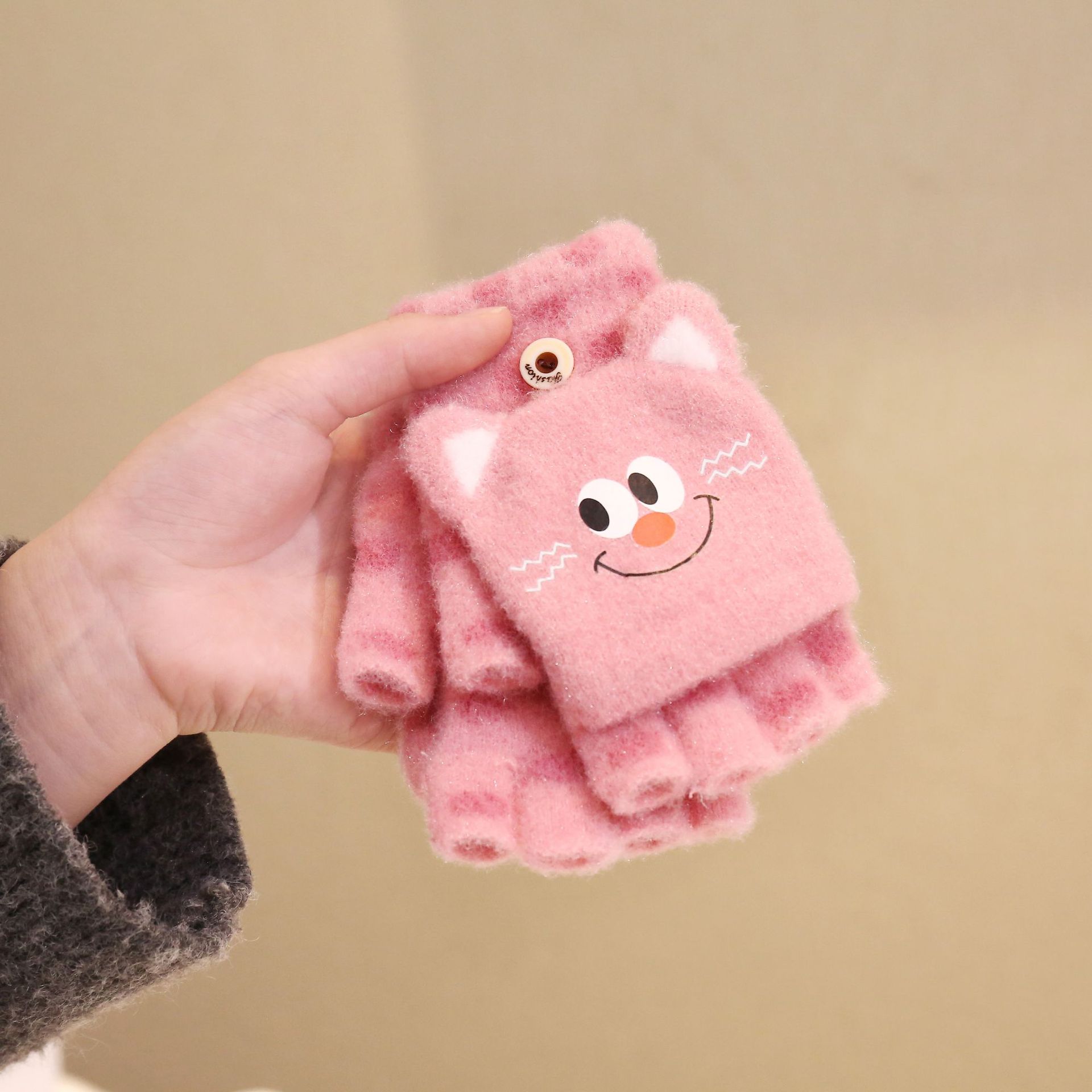 어린이 장갑 겨울 니트 따뜻한 소년과 소녀 귀여운 만화 야외 놀이 방한 플립 온 장갑을 타고스토어 가기