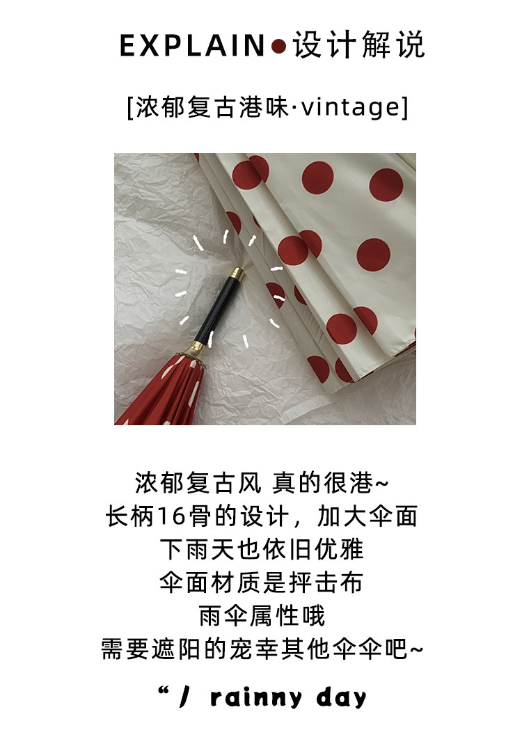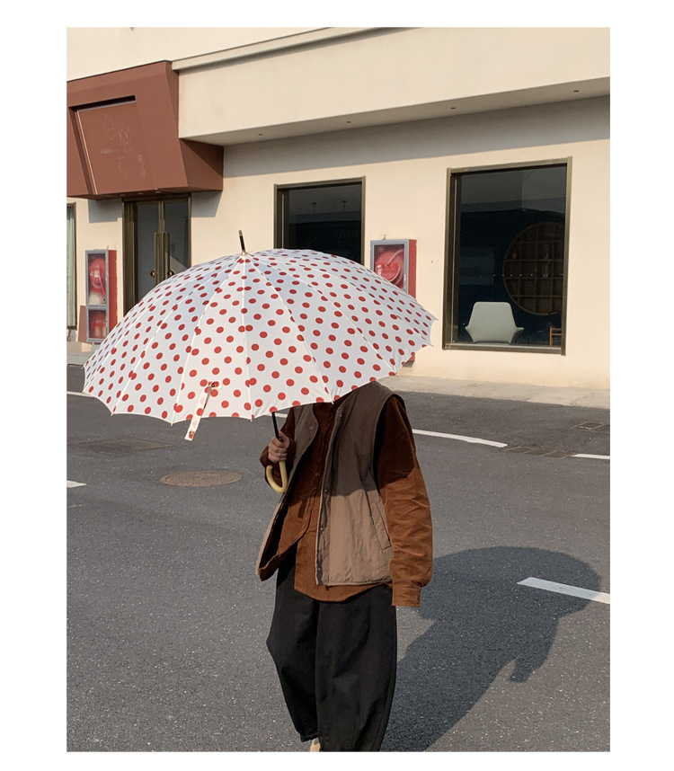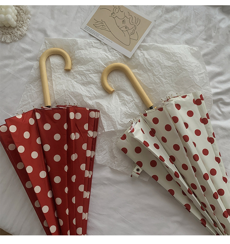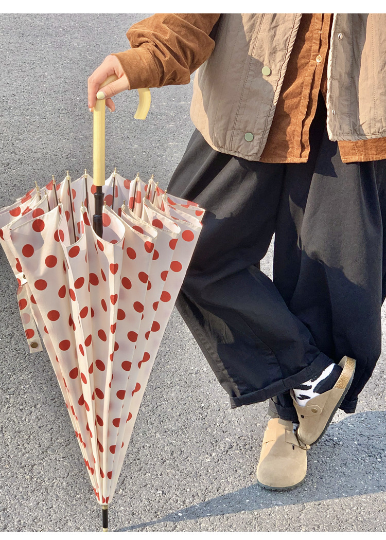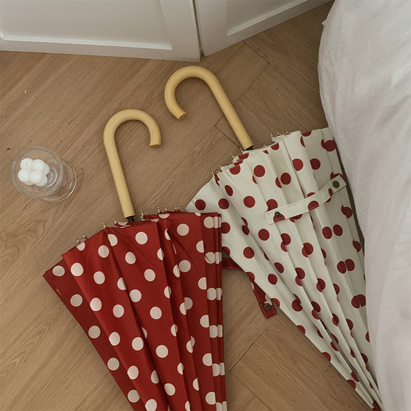고급 홍콩 스타일의 긴 손잡이 우산 여성 폴카 도트 16-뼈 초대형 우산 접이식 자동 단단한 비와 비 이중 사용스토어 가기