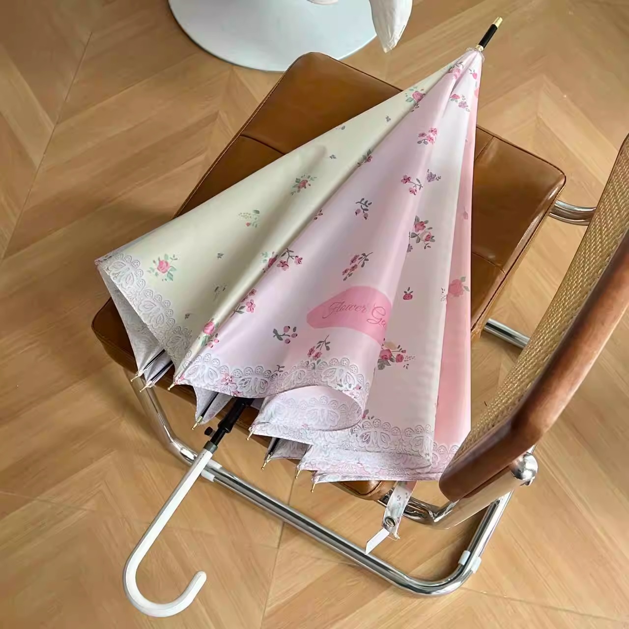 • 빈티지 크림 16 본 긴 손잡이 우산