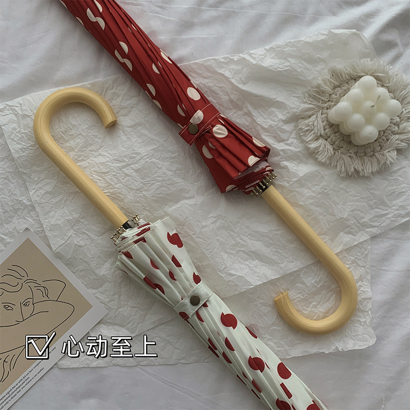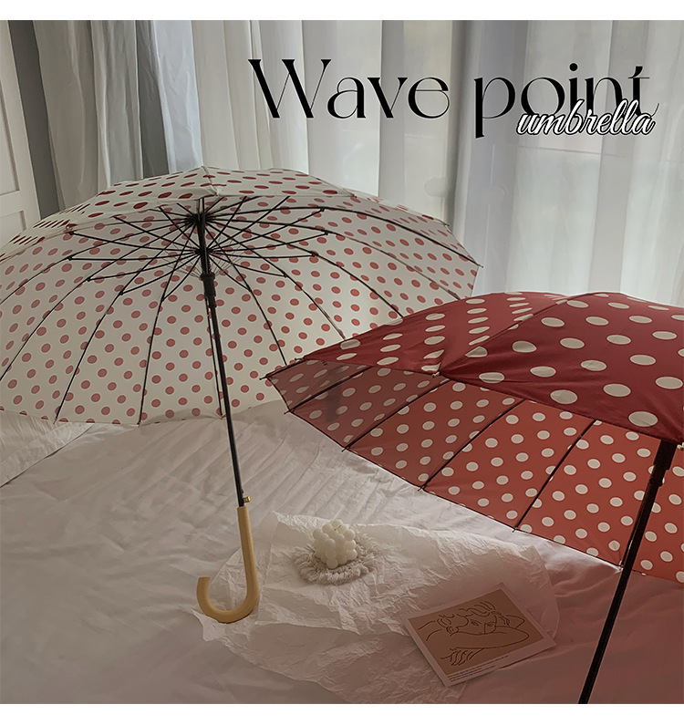 • 모카 도트 무늬 복숭아 나무 손잡이 16K 롱 핸들 우산
