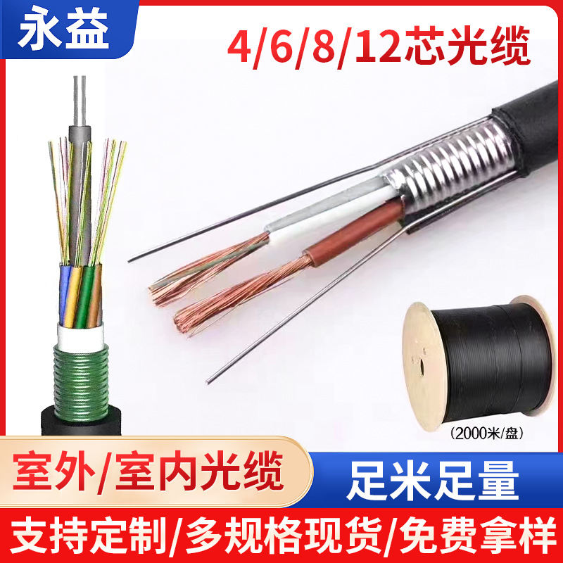 재고 실내 및 실외 광 케이블 4 코어 6 코어 12 코어 튜브 모니터링 통신 광섬유 케이블 단일 모드 장갑 광 케이블스토어 가기