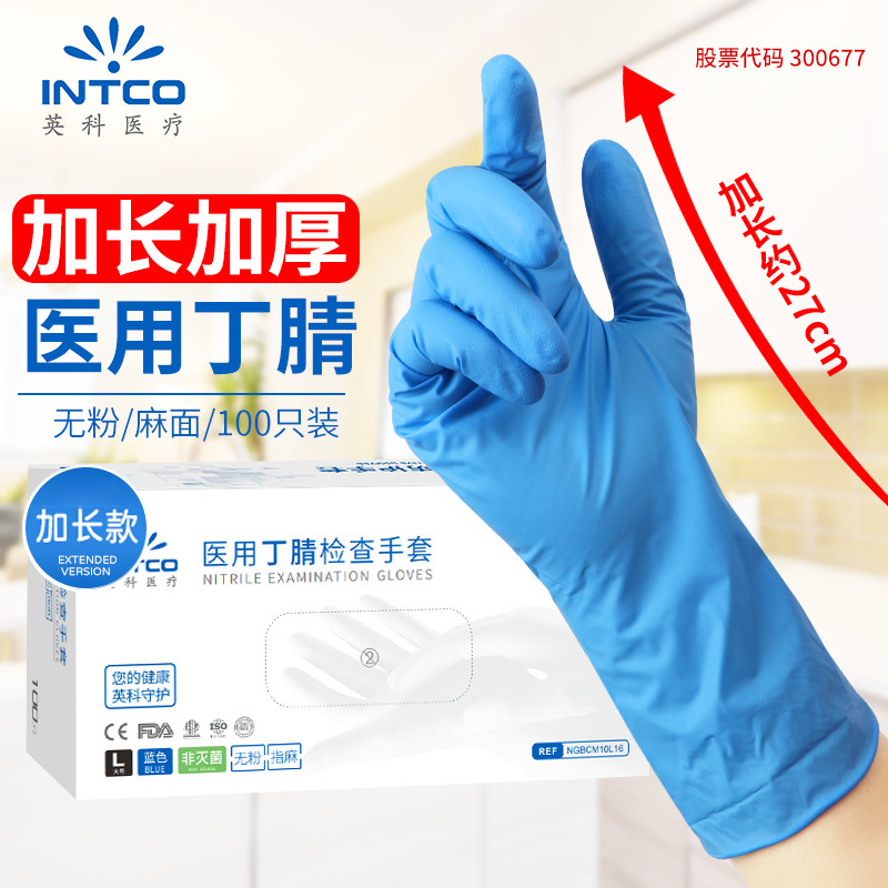 잉케 12 인치 의료용 니트릴 장갑 일회용 길어진 가정용 식품 등급 식기 세척 니트릴 방수 장갑