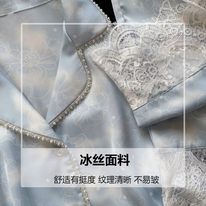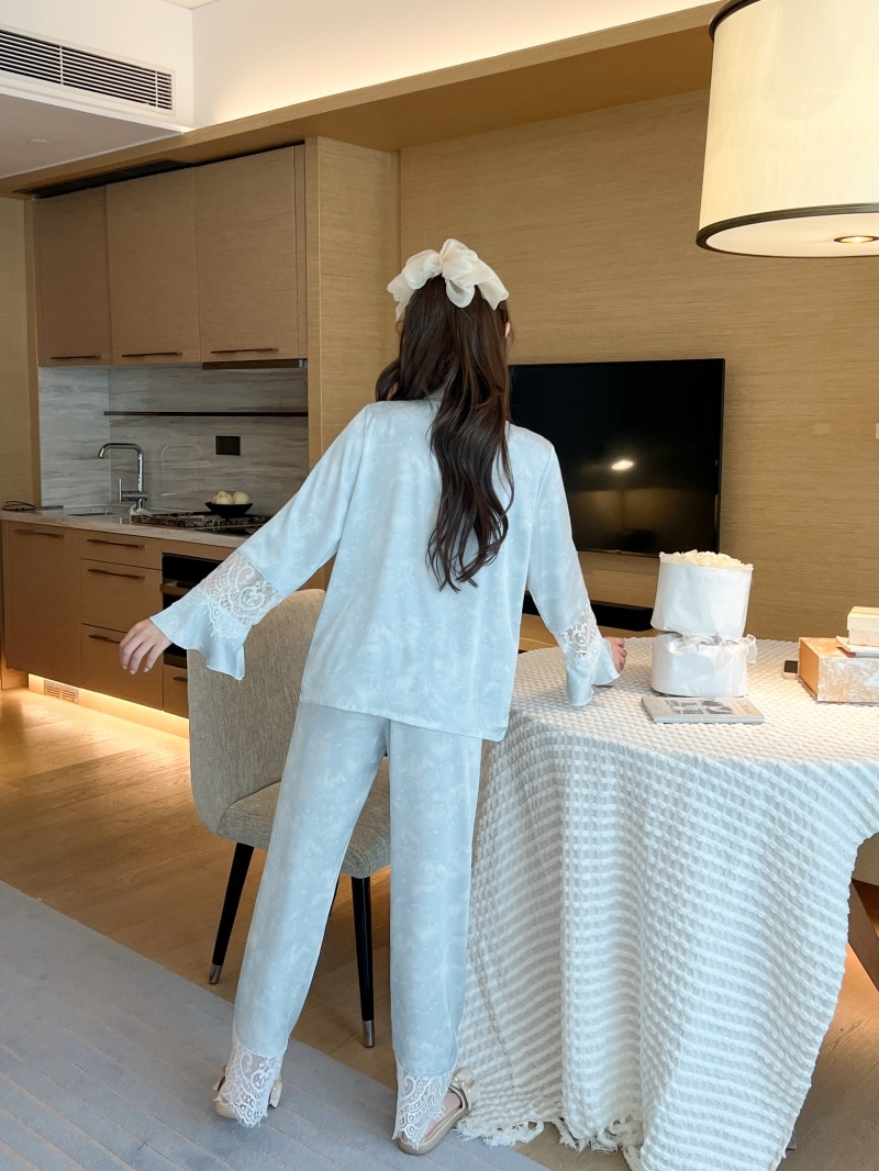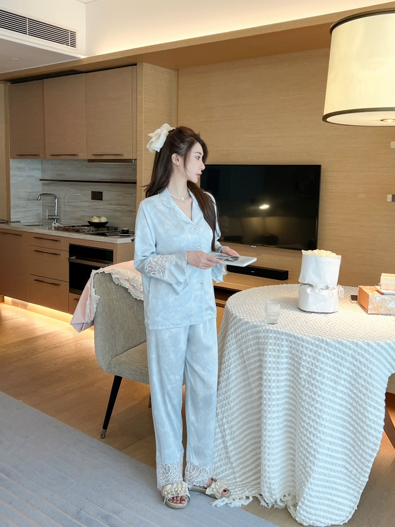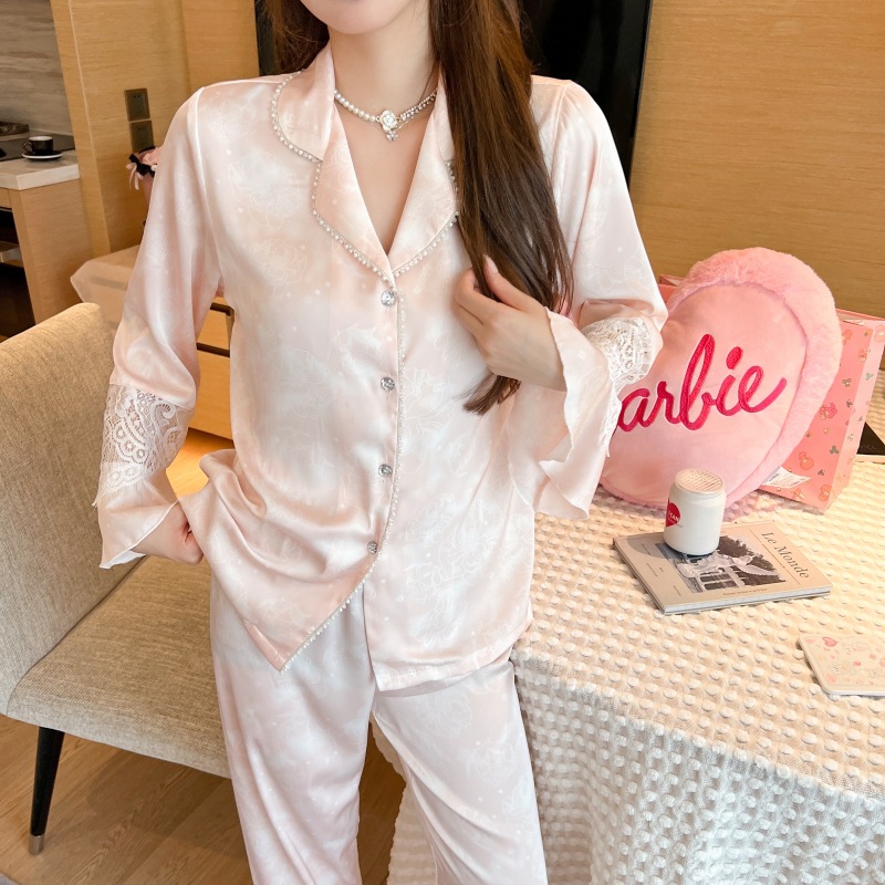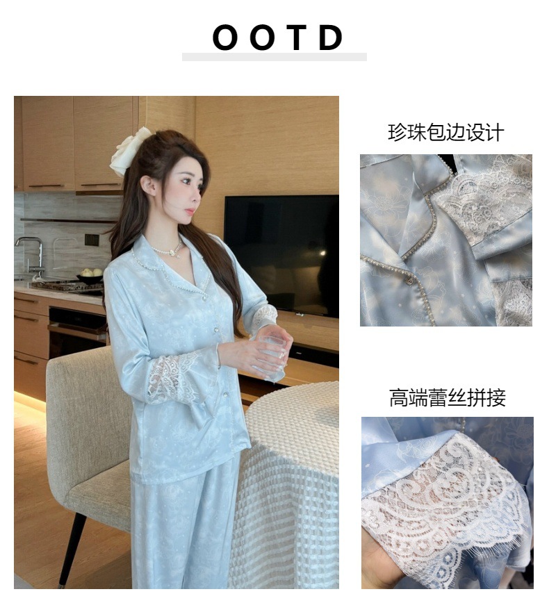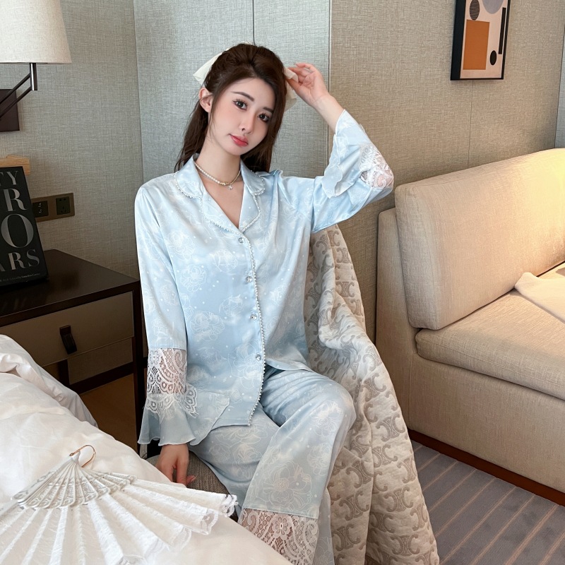[DeLuna의 눈물] 새로운 잠옷 여성 2024 요정 스타일 레이스 프랑스 홈 착용 긴팔 바지 아이스 실크스토어 가기