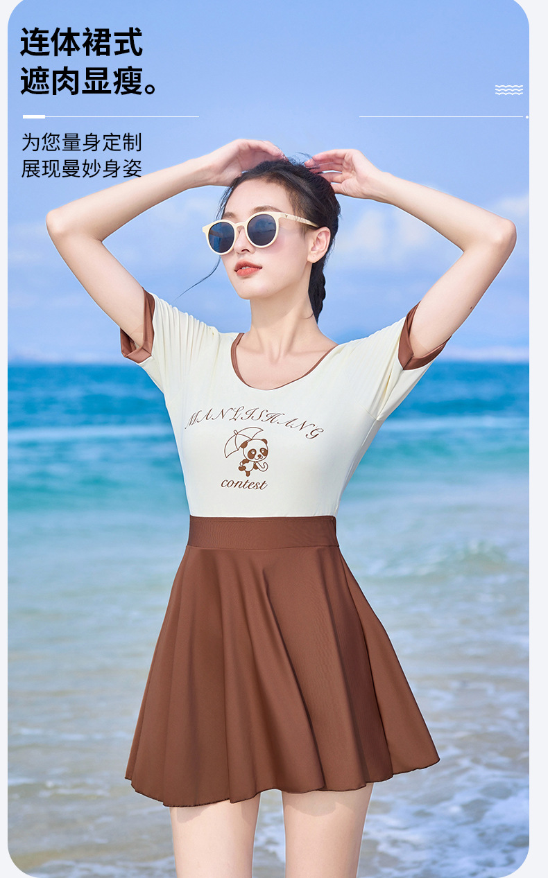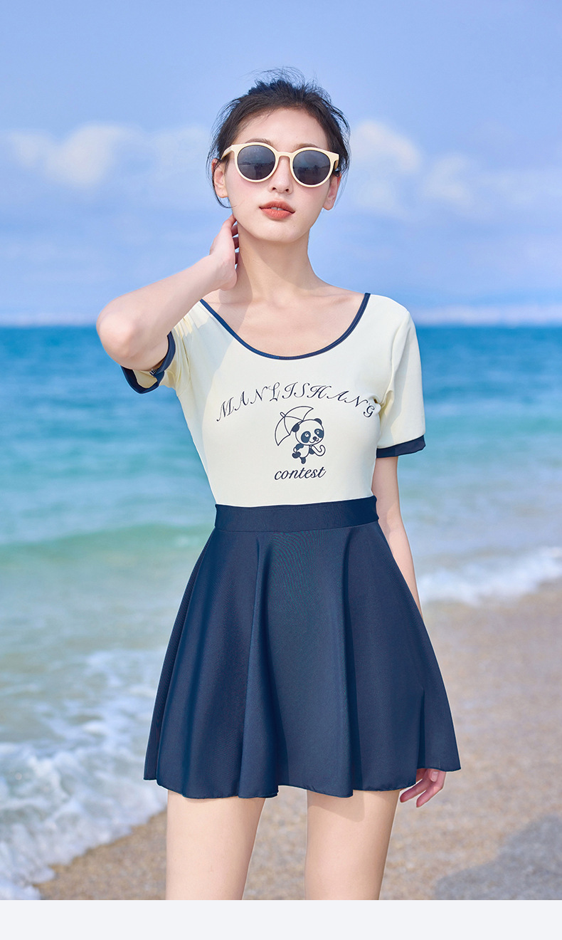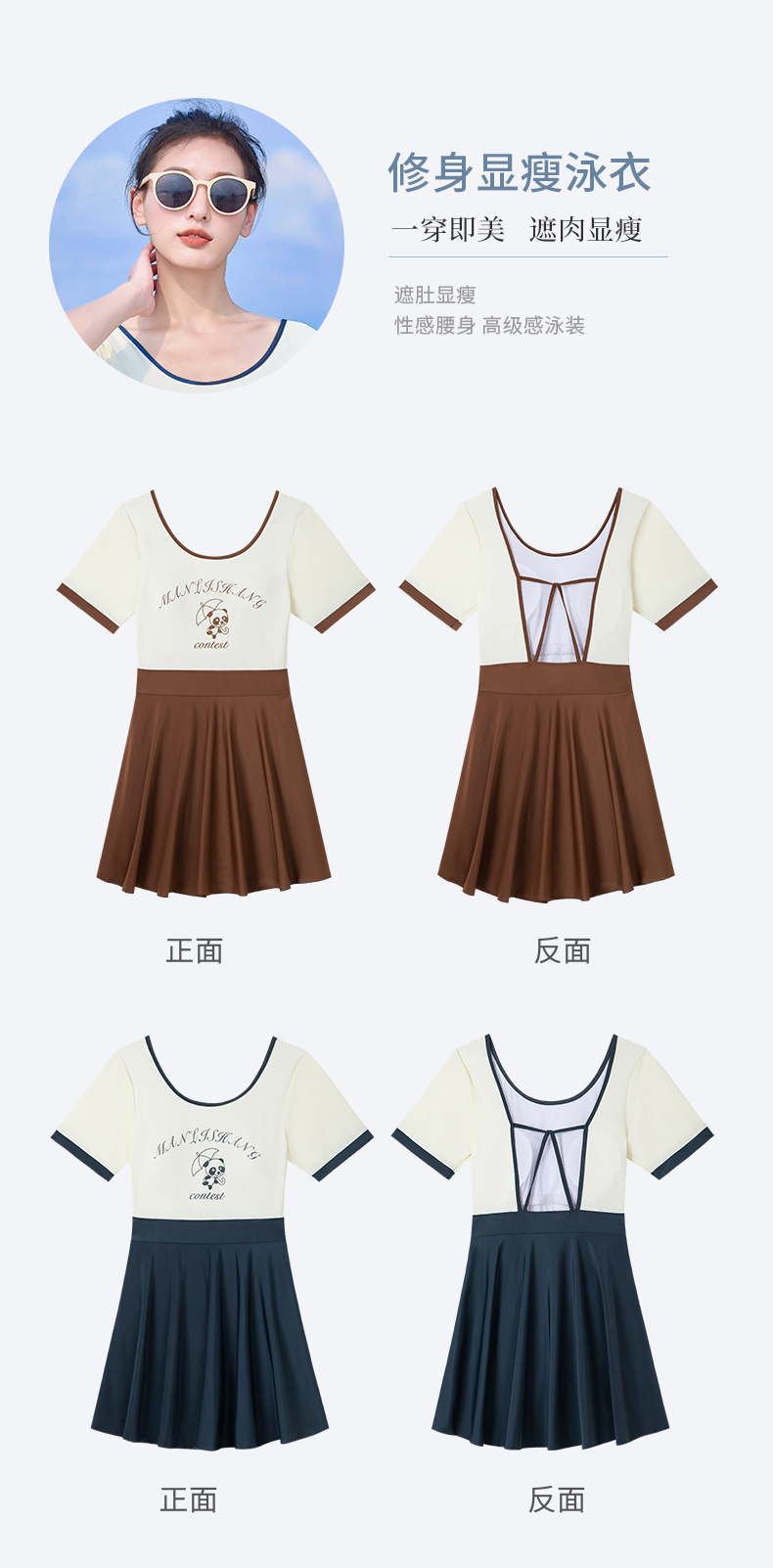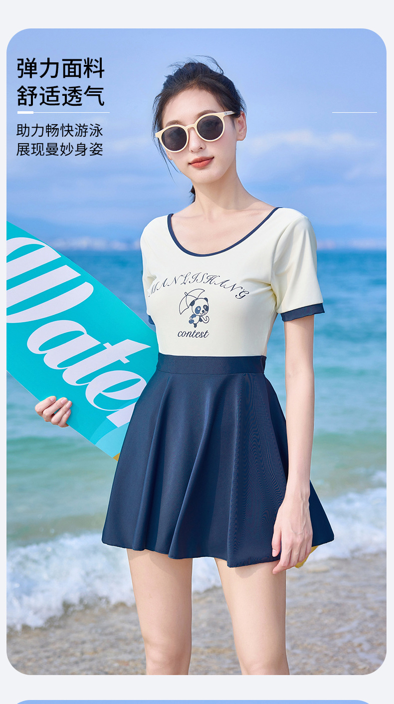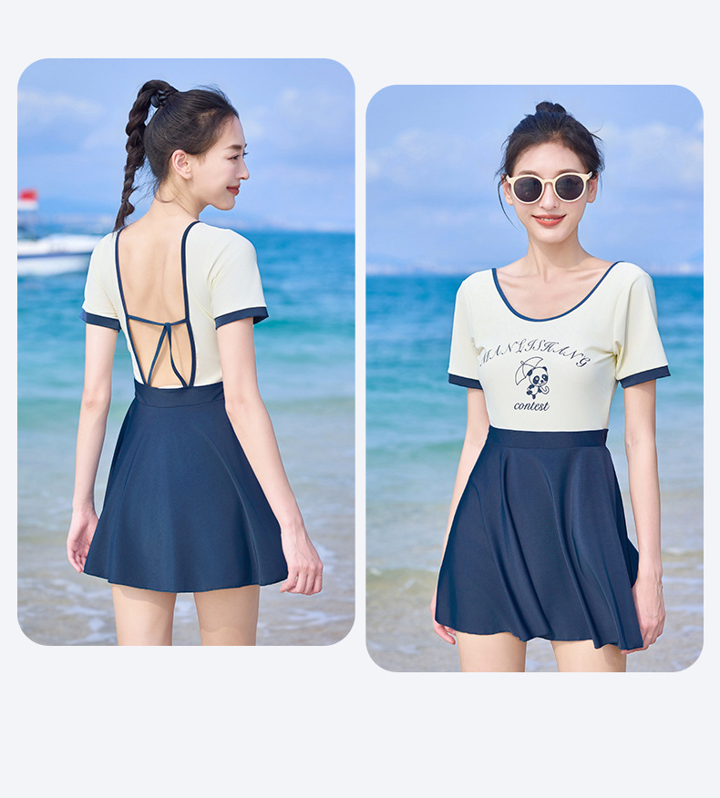 수영복 여성의 새로운 고급 보수적 인 원피스 수영복 약간 뚱뚱한 소녀 온천 수영복 백리스 섹시한 수영 스커트