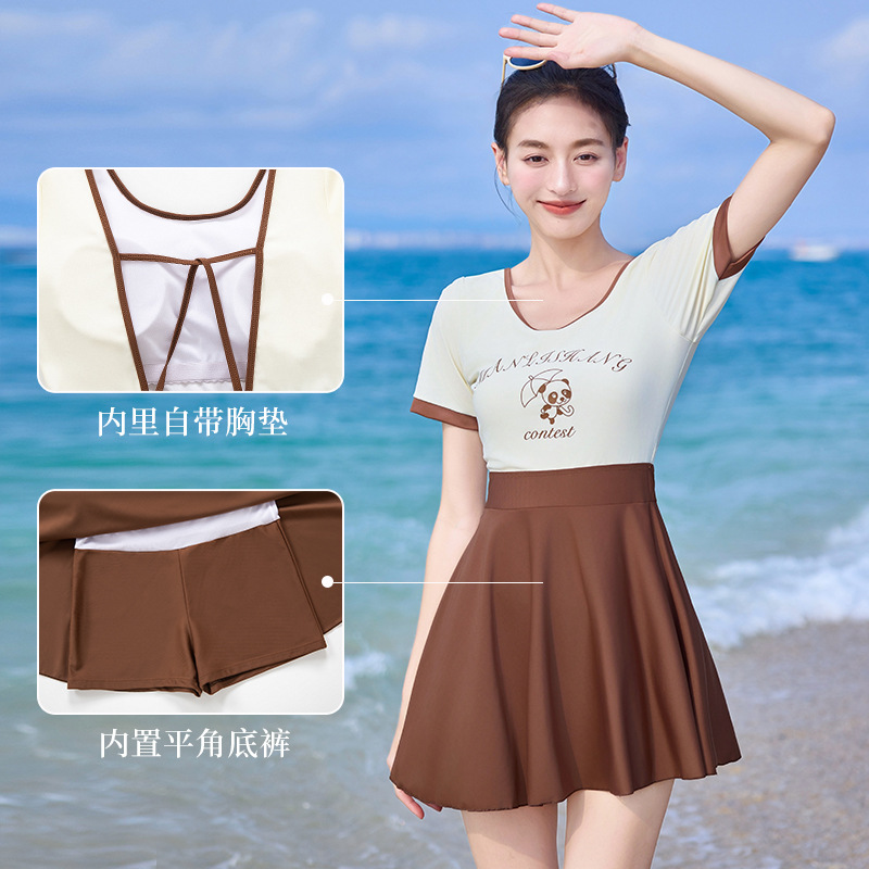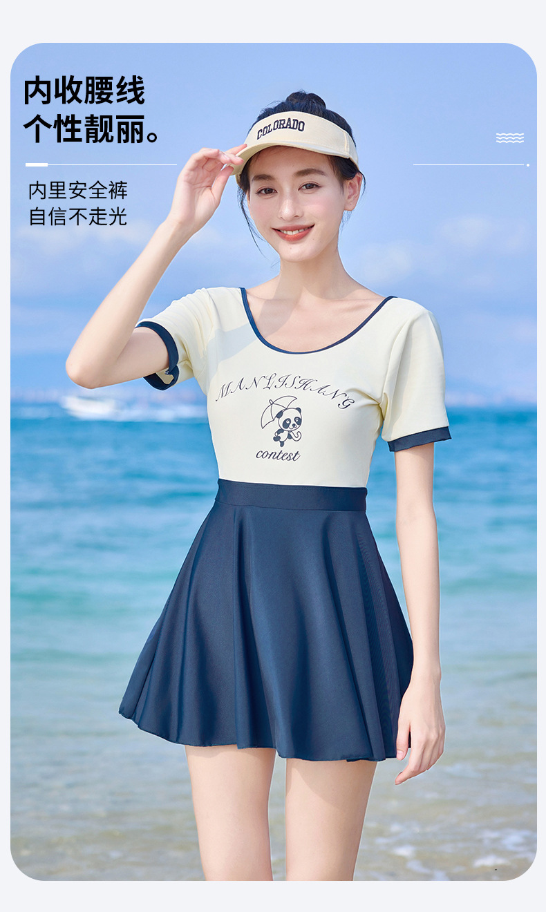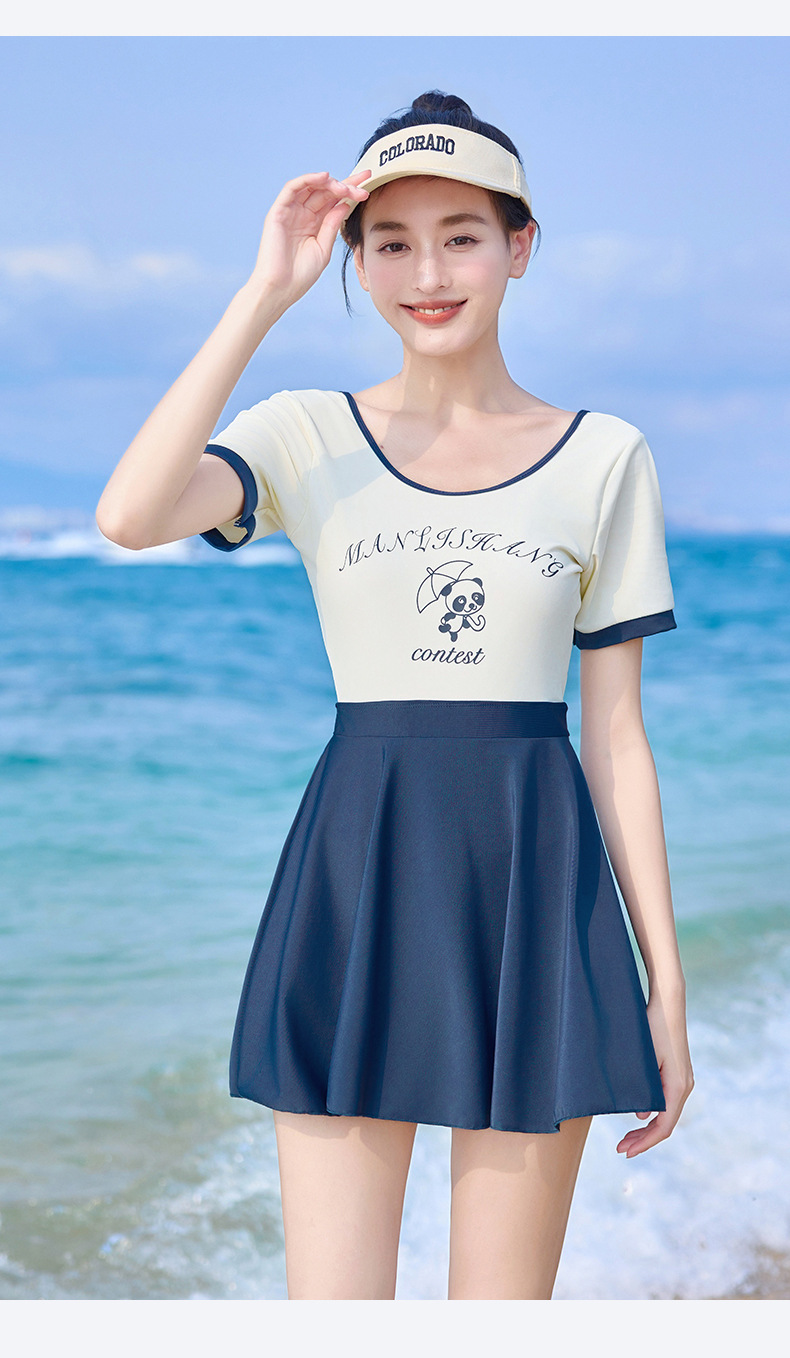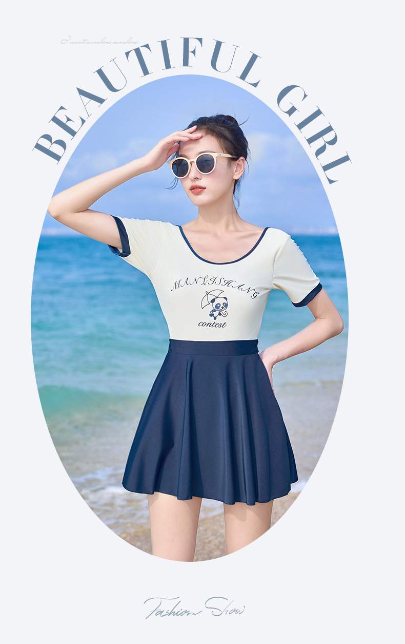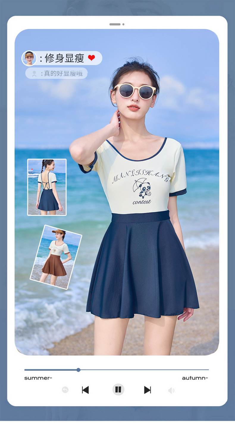 수영복 여성의 새로운 고급 보수적 인 원피스 수영복 약간 뚱뚱한 소녀 온천 수영복 백리스 섹시한 수영 스커트