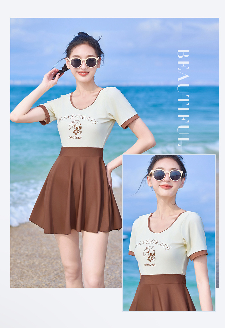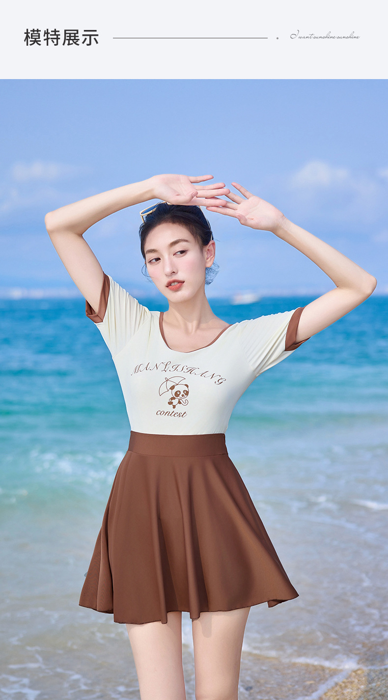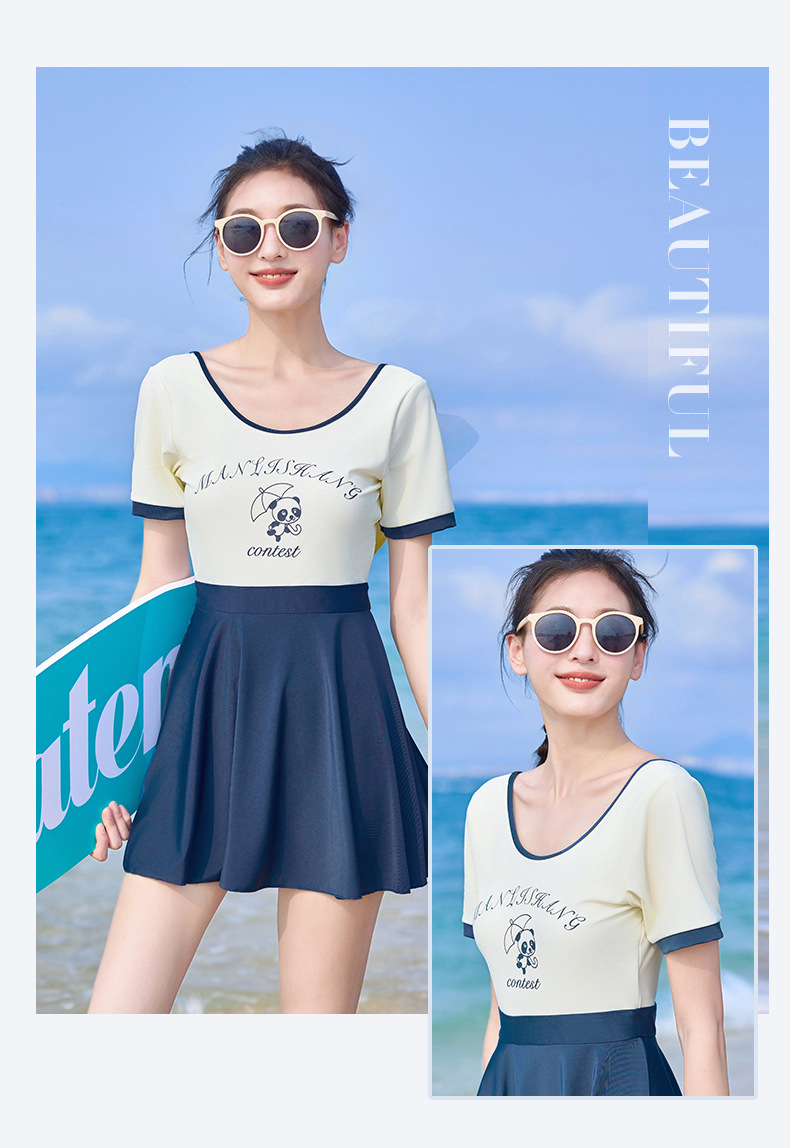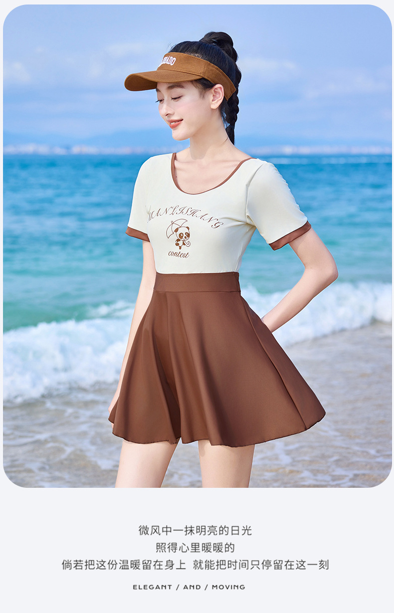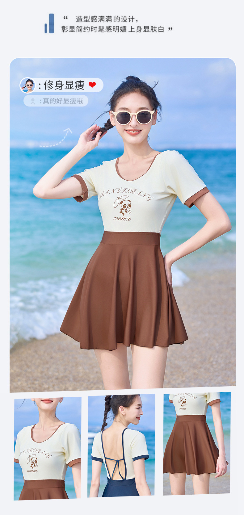 수영복 여성의 새로운 고급 보수적 인 원피스 수영복 약간 뚱뚱한 소녀 온천 수영복 백리스 섹시한 수영 스커트