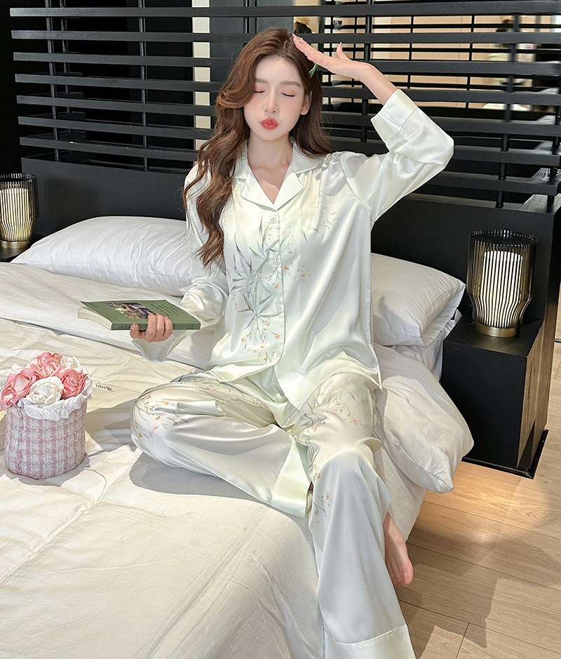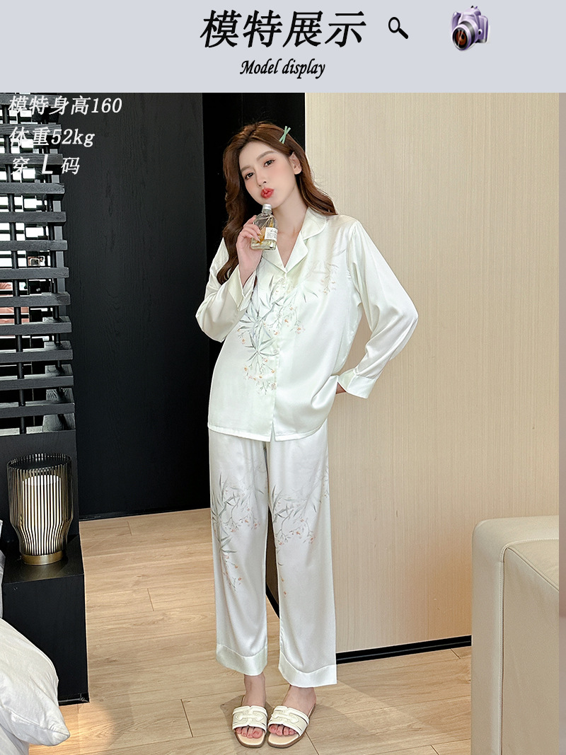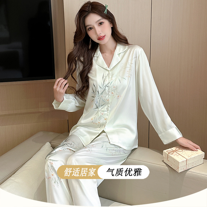 여성용 아이스 실크 잠옷 2026년 신상 긴팔 고급 신중국풍 프린트 심플하고 부드러운 홈웨어로 외출복으로도 활용 가능스토어 가기