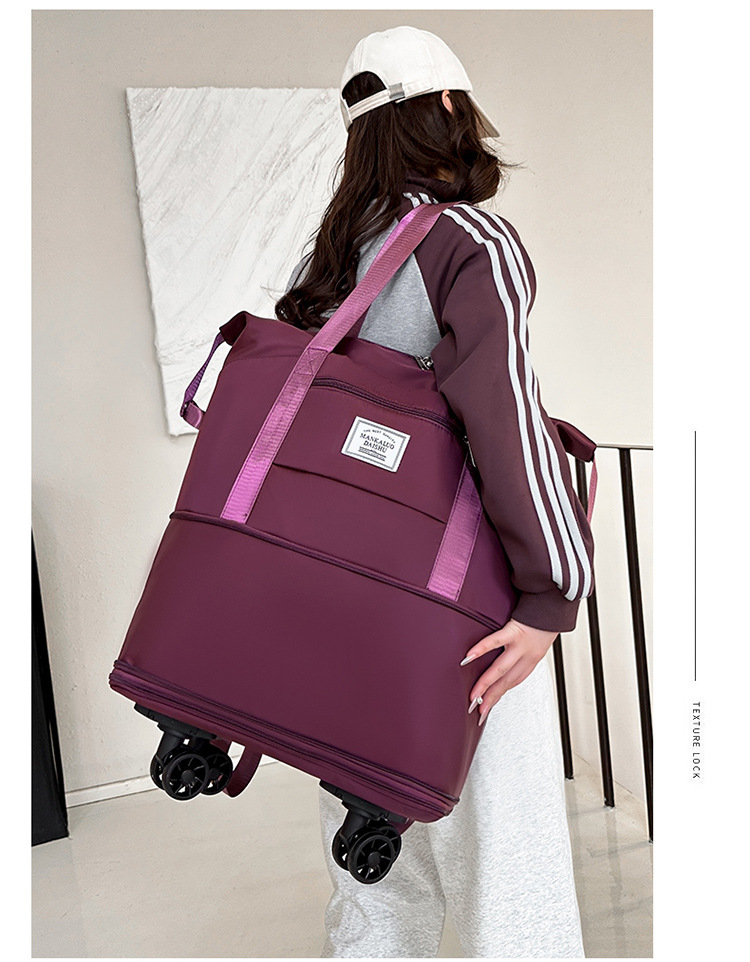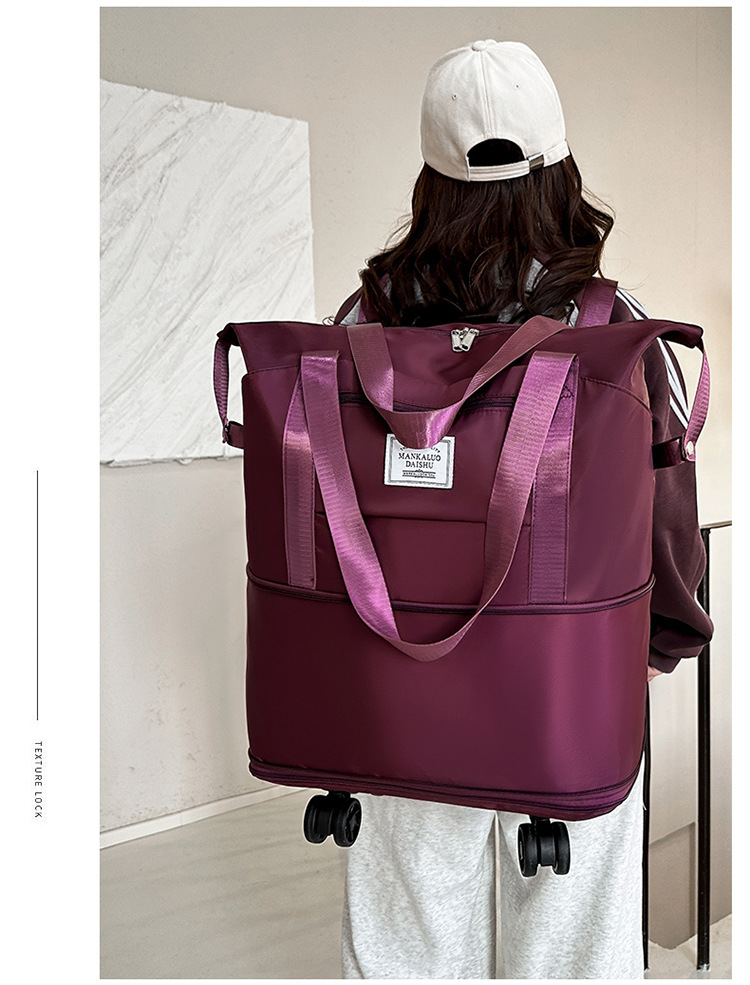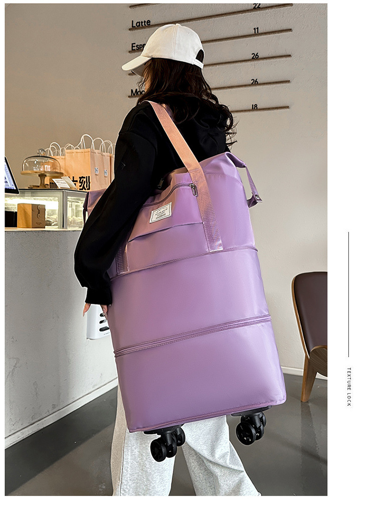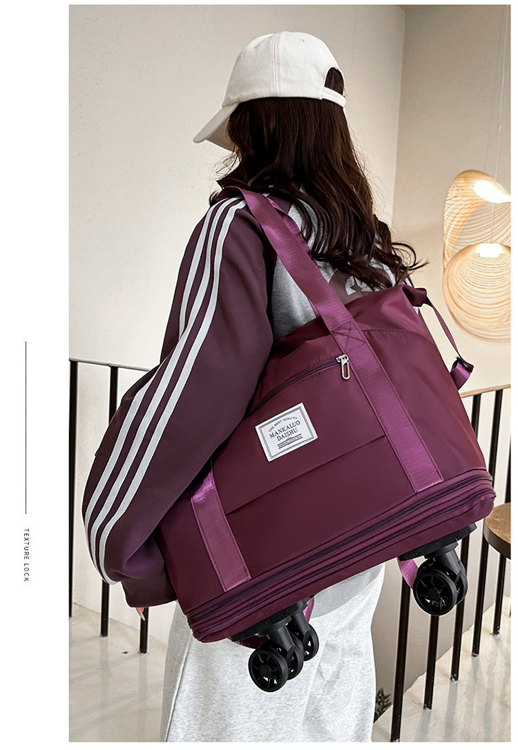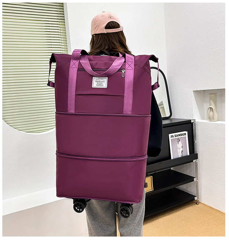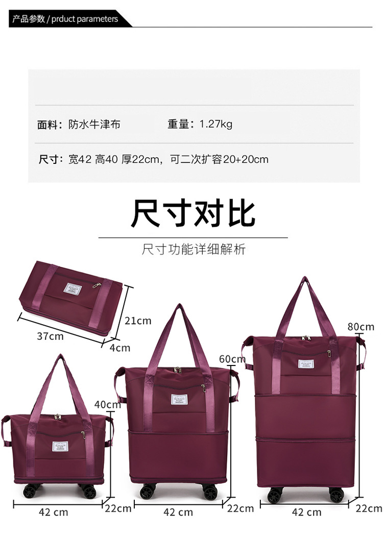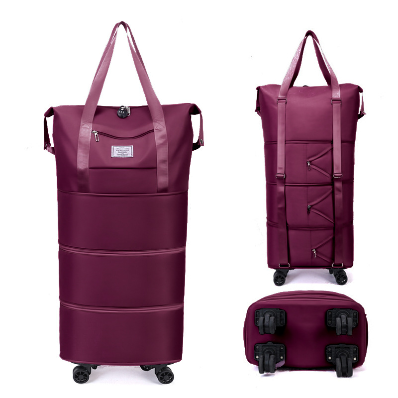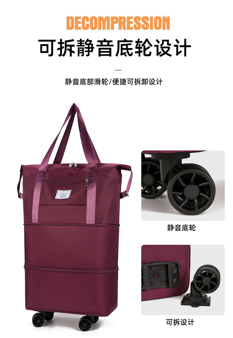 • 4겹 딥 퍼플 백팩, 접이식 및 탈부착 가능, 4개의 사일런트 유니버설 휠 + 비밀번호 잠금 장치
