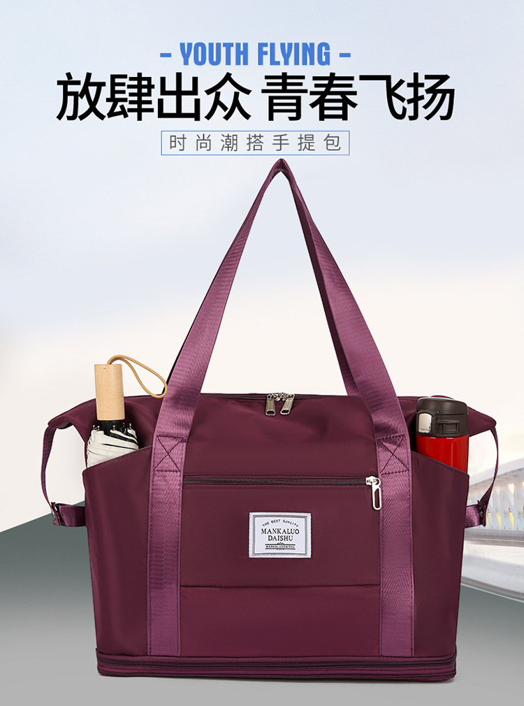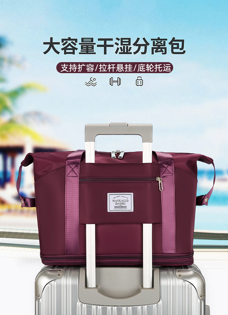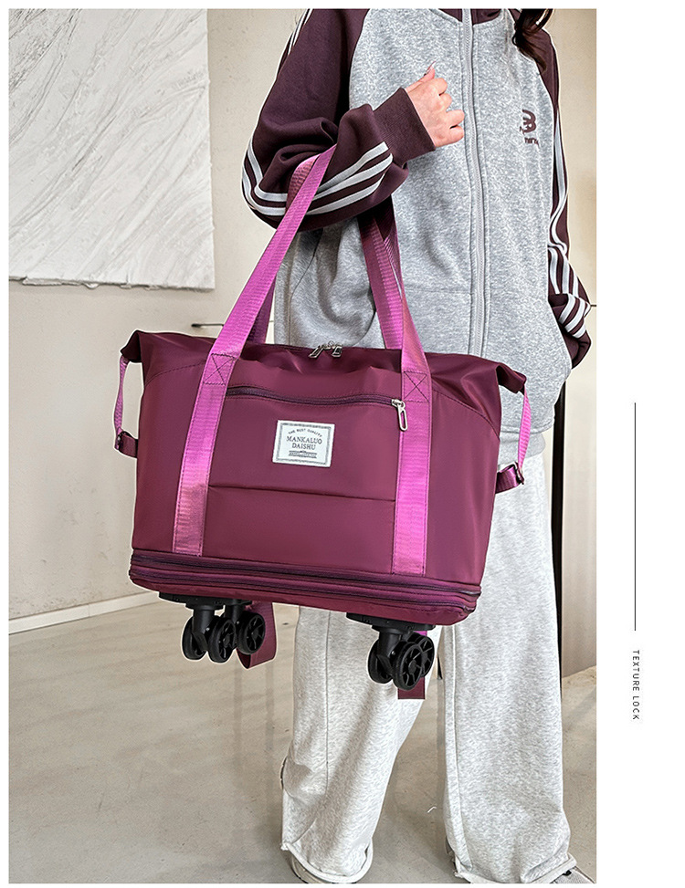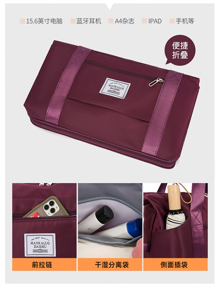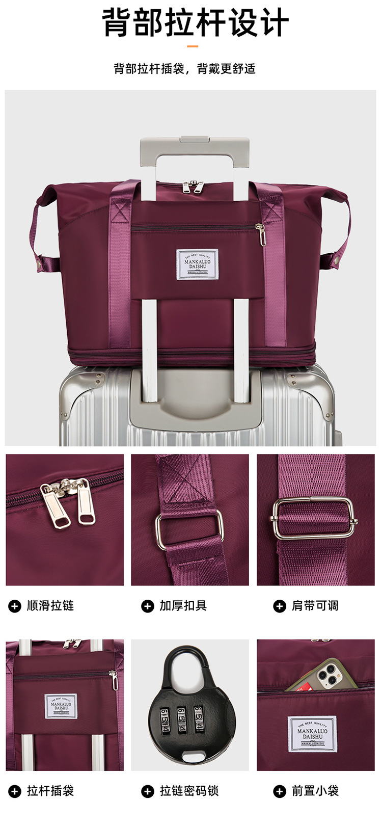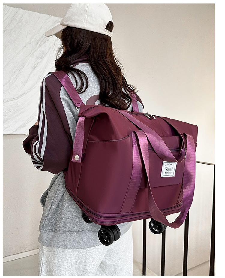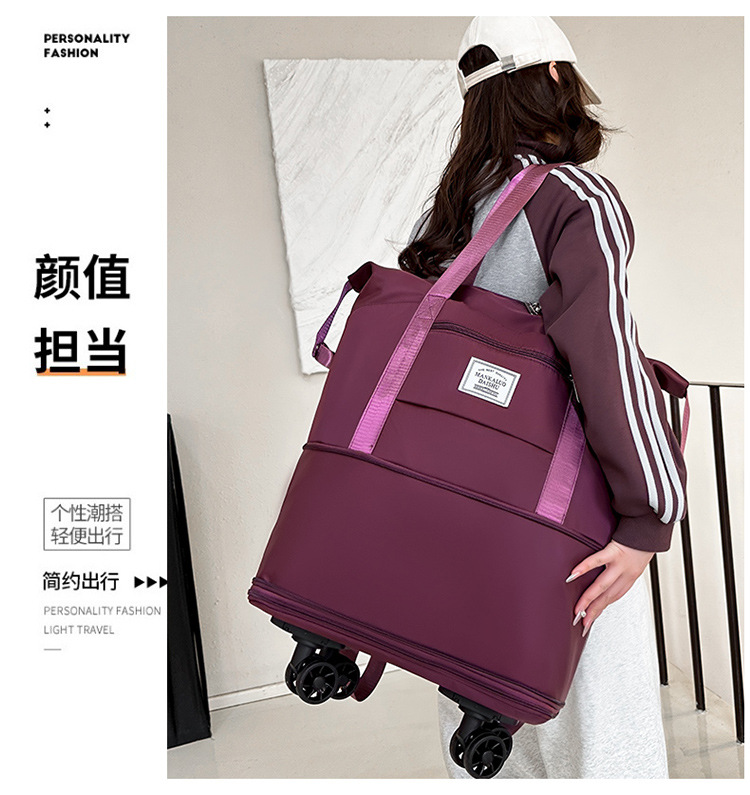 • 4겹 딥 퍼플 백팩, 접이식 및 탈부착 가능, 4개의 사일런트 유니버설 휠 + 비밀번호 잠금 장치