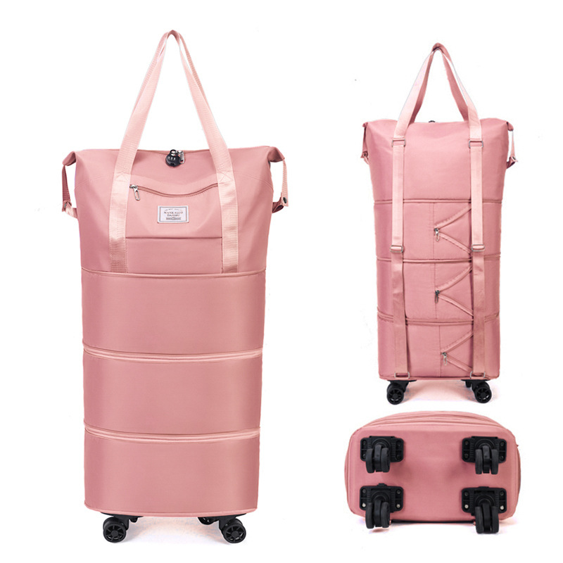 • 4겹 핑크 백팩, 접이식 및 탈부착 가능, 4개의 사일런트 유니버설 휠 + 비밀번호 잠금 장치