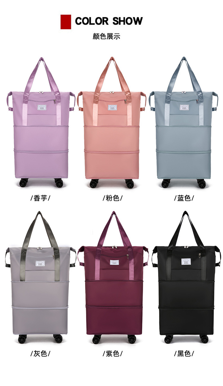 • 4겹의 연보라색 배낭, 접이식 및 탈착식, 4개의 무소음 범용 바퀴 + 비밀번호 잠금 장치