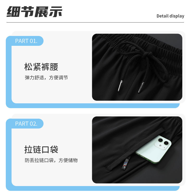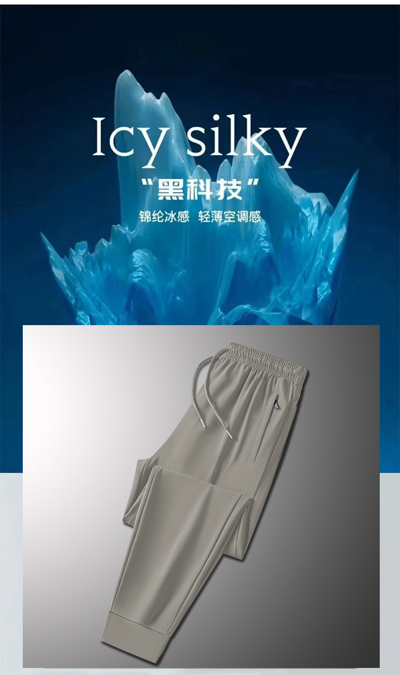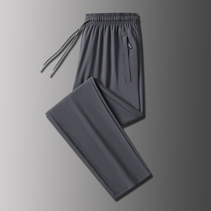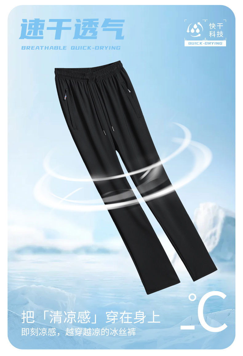 2024 여름 새로운 얼음 실크 바지 남자의 빠른 건조 캐주얼 스포츠 바지 느슨한 대형 통기성 거들 에어컨 바지스토어 가기