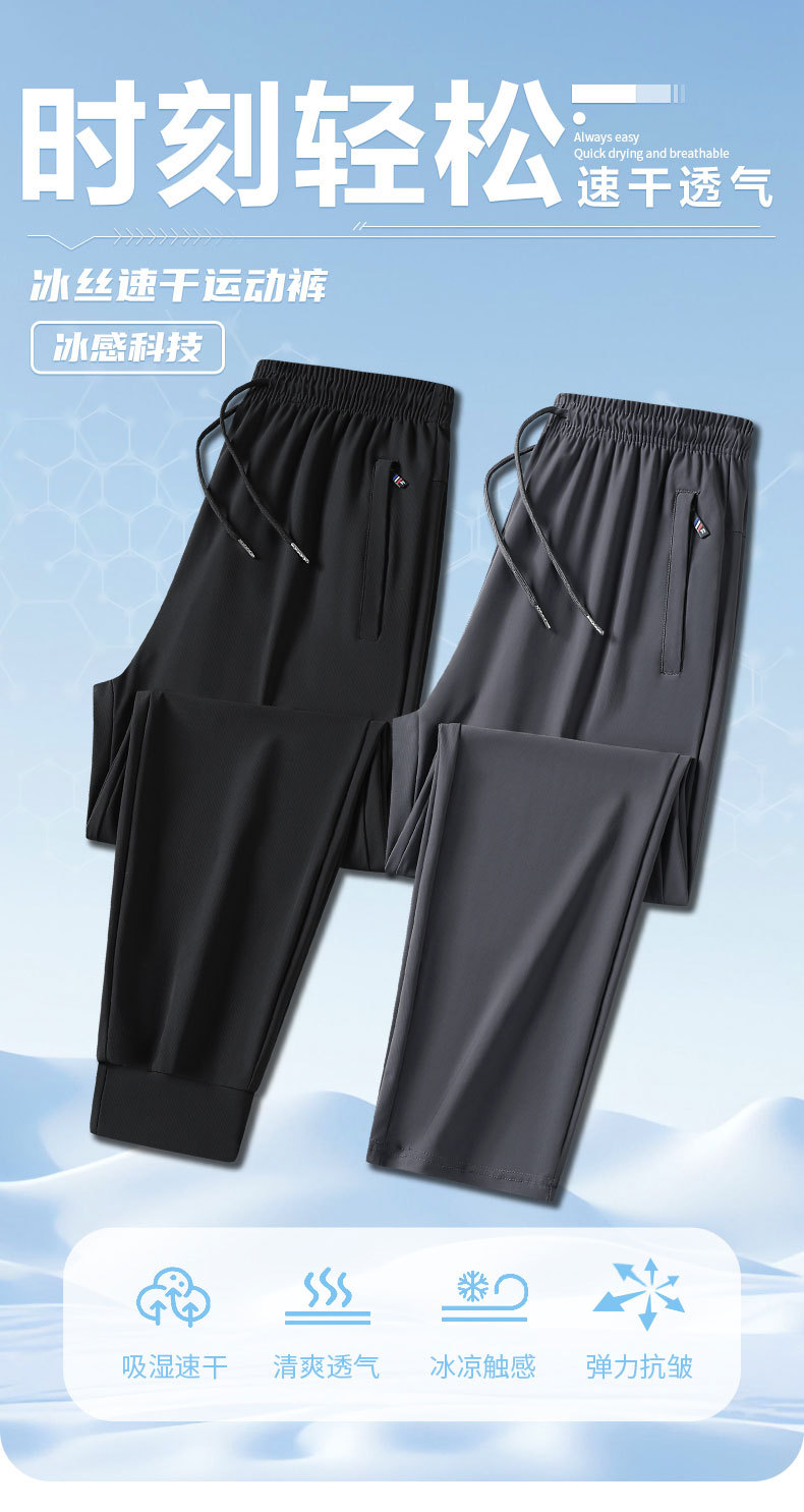 2024 여름 새로운 얼음 실크 바지 남자의 빠른 건조 캐주얼 스포츠 바지 느슨한 대형 통기성 거들 에어컨 바지
