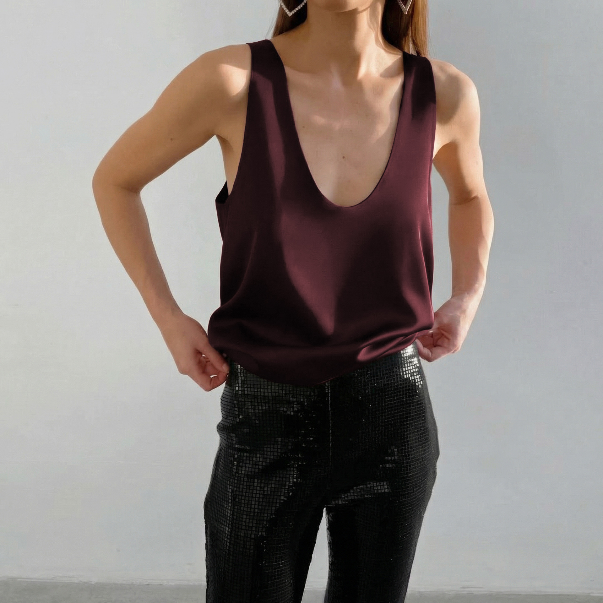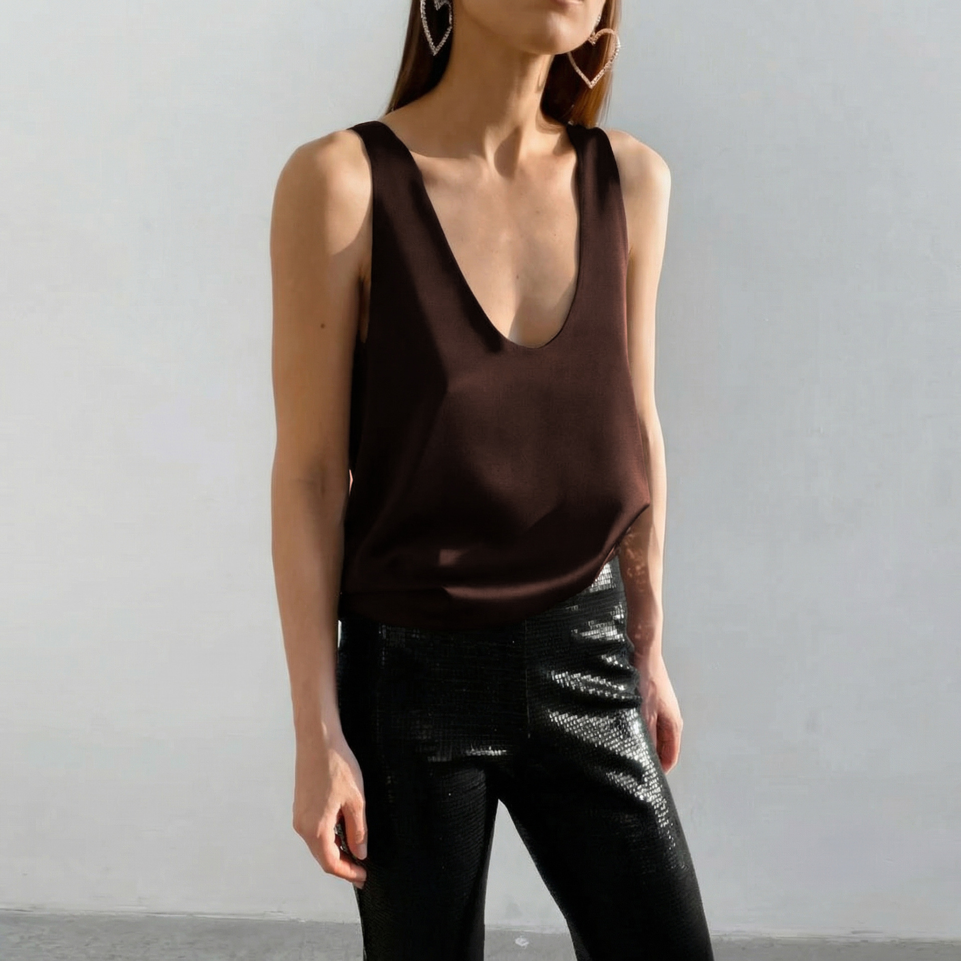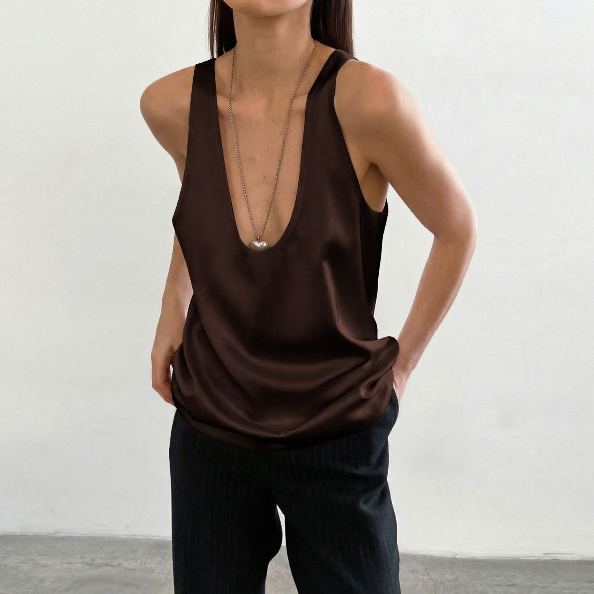 2026 통근용 심플 이너웨어 새틴 딥V넥 민소매 조끼 여성 루즈핏 아이스 실크 탑 여름 유럽 및 미국 여성복스토어 가기