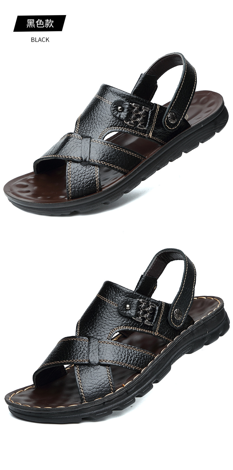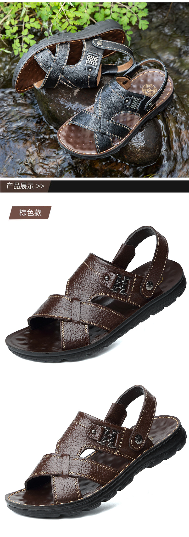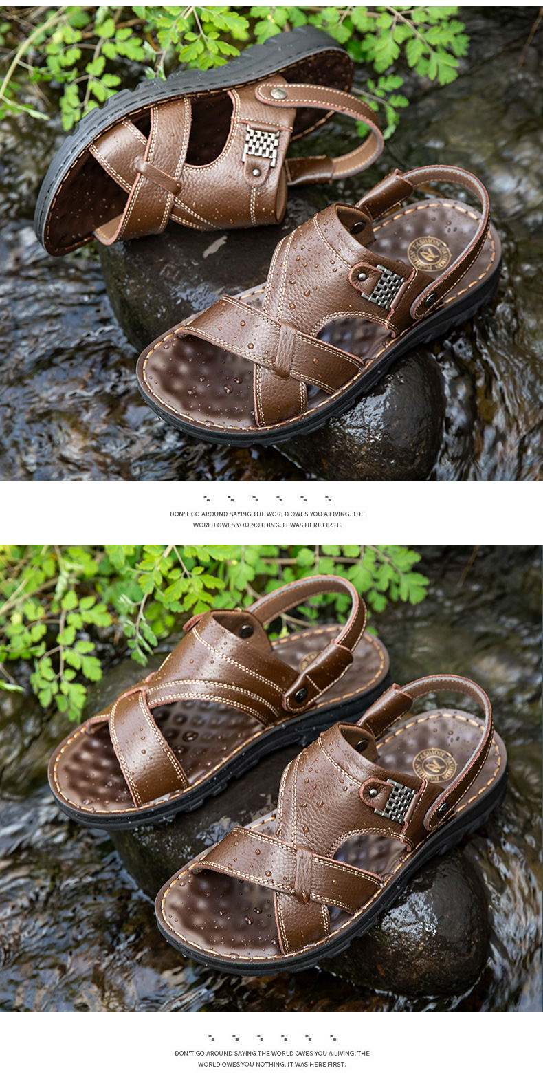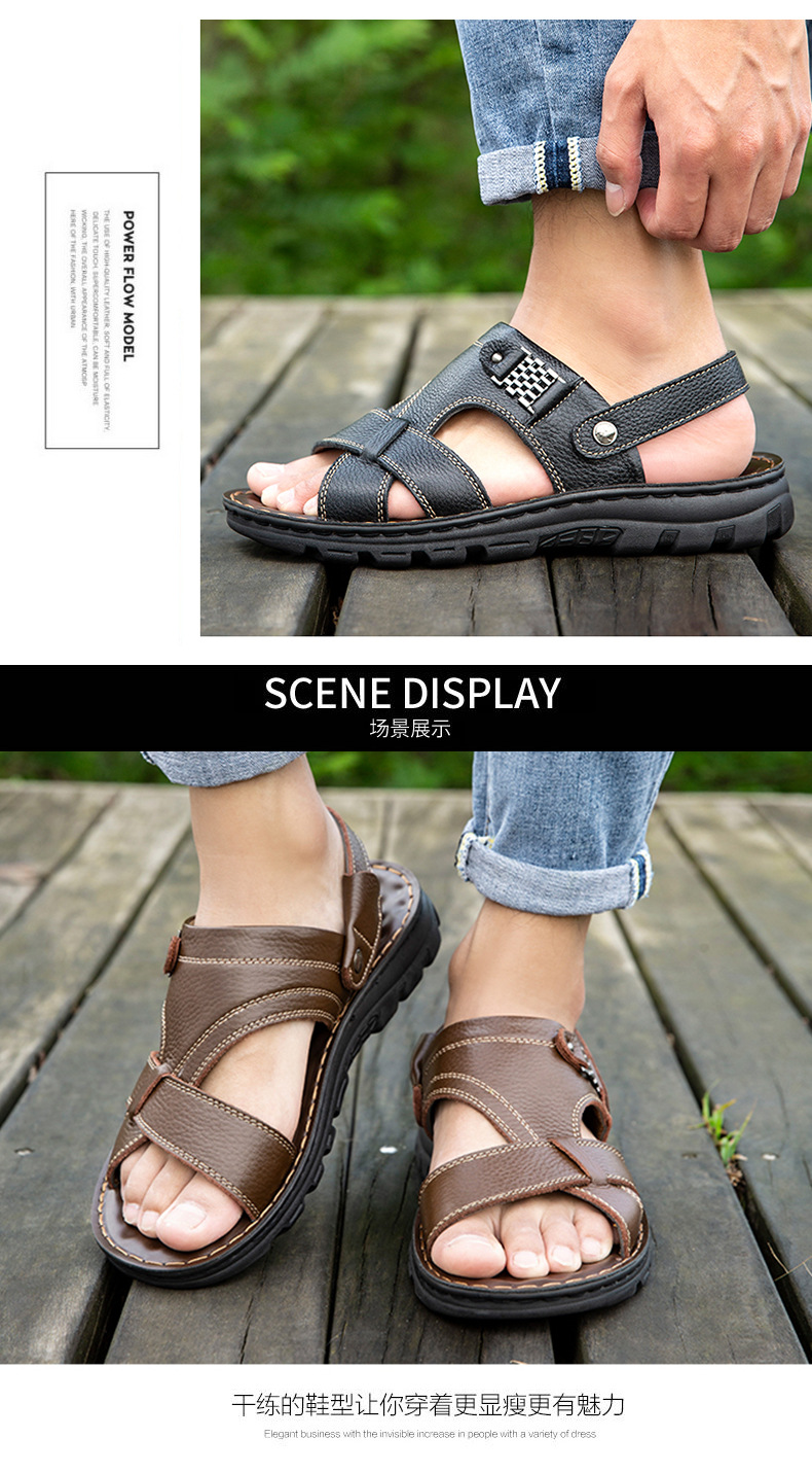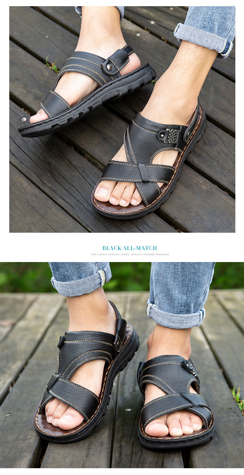 남성용 샌들 남성용 아웃도어 2021 여름 새로운 정품 가죽 비치 슈즈 이중 사용 샌들 통기성 소 가죽 아빠 신발
