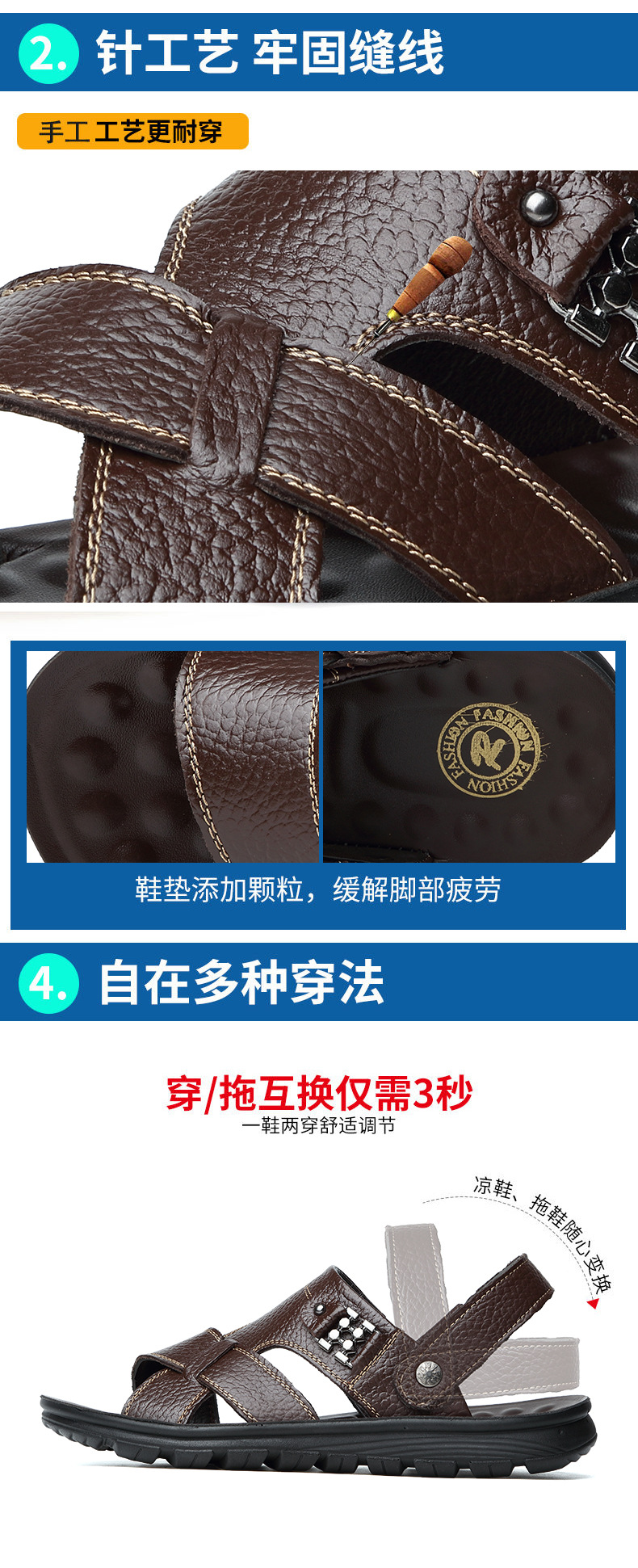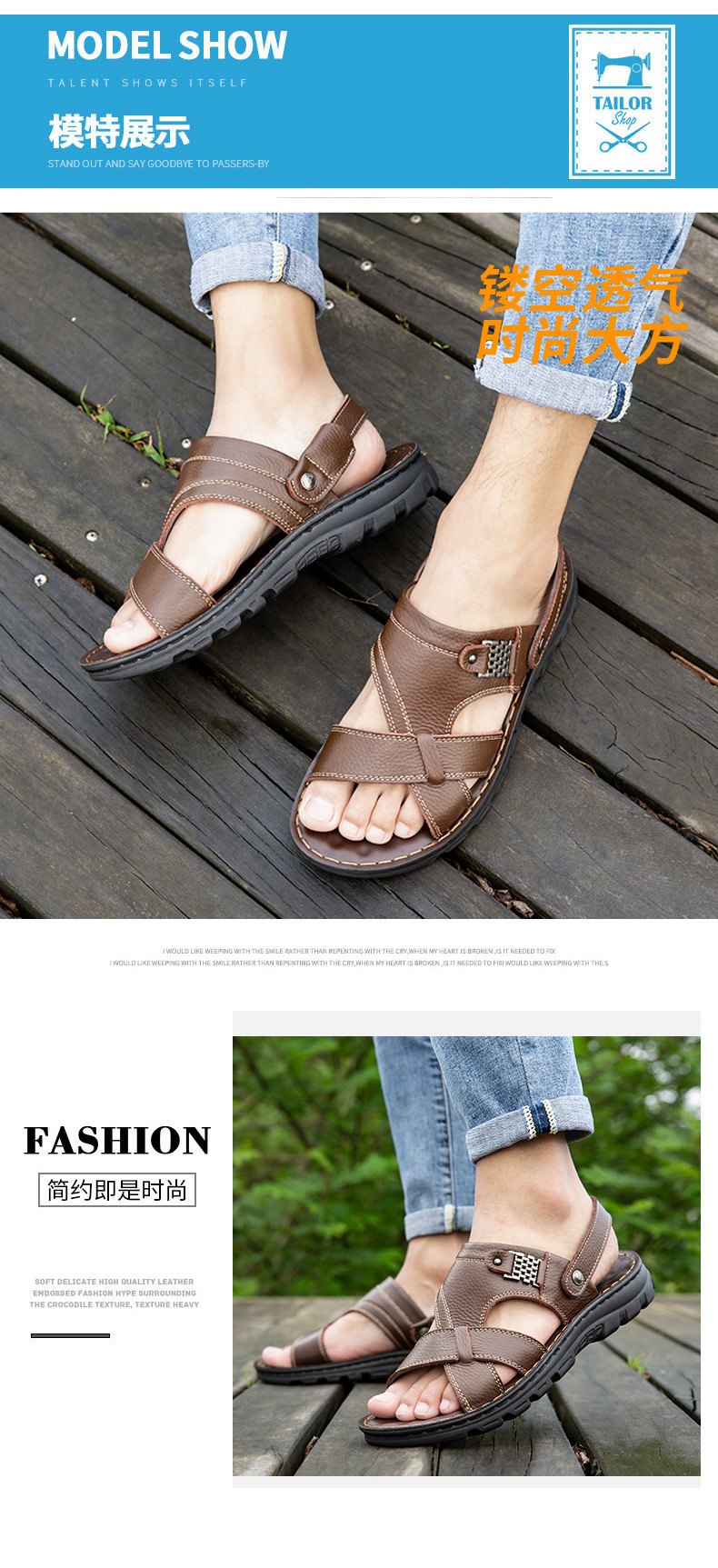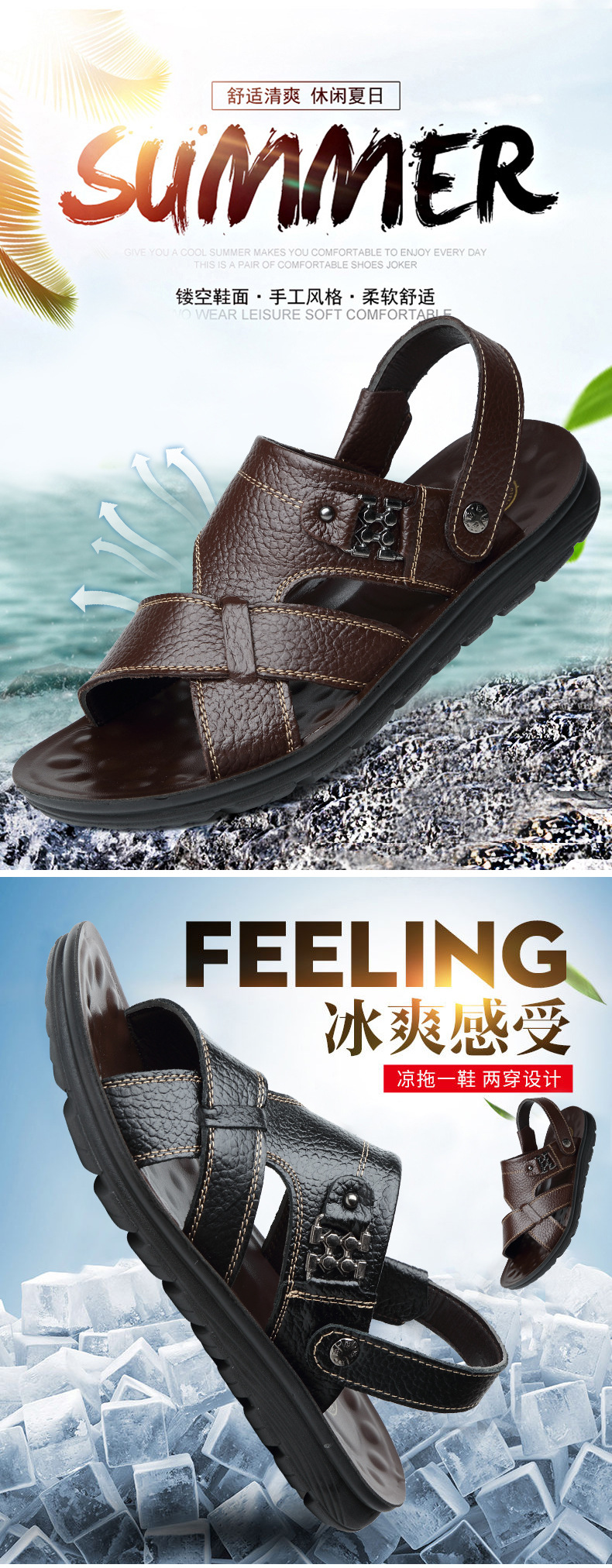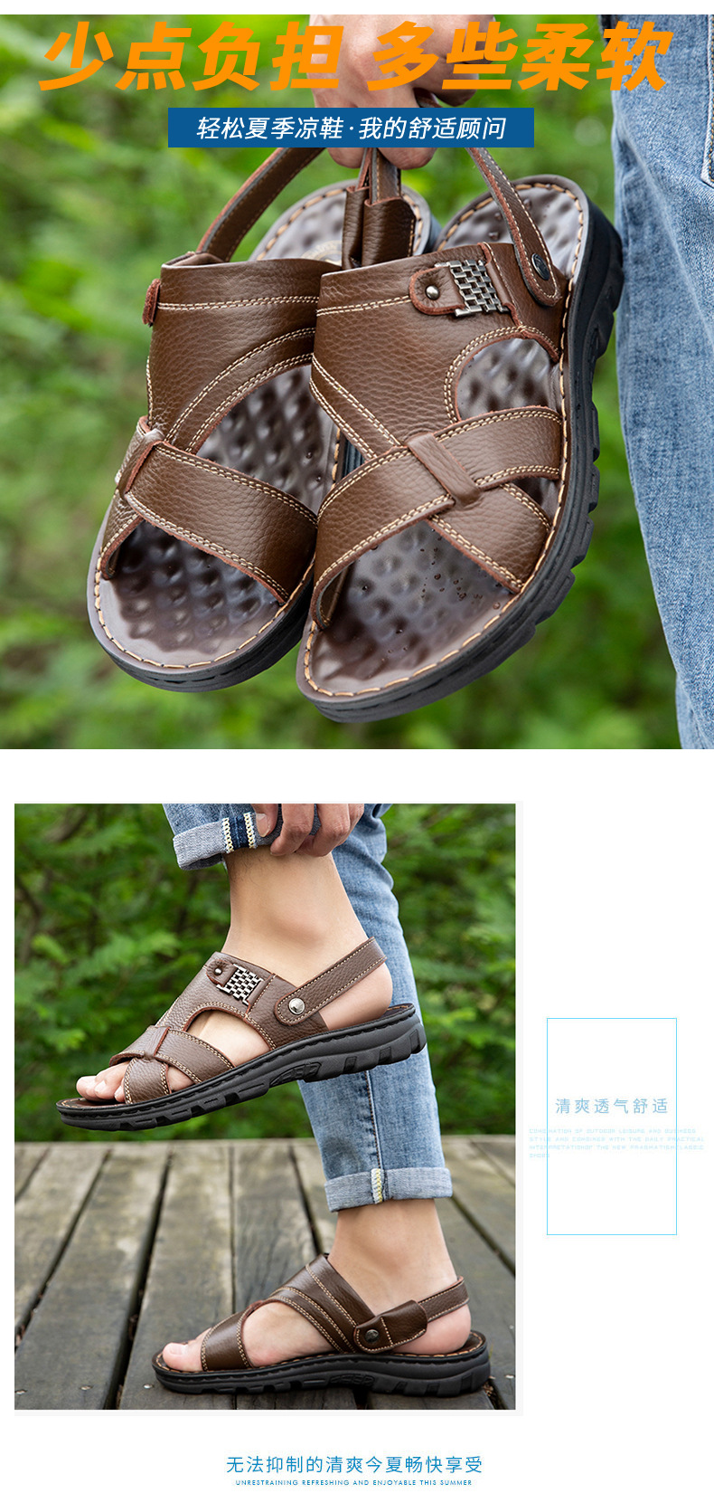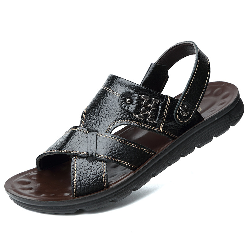 남성용 샌들 남성용 아웃도어 2021 여름 새로운 정품 가죽 비치 슈즈 이중 사용 샌들 통기성 소 가죽 아빠 신발스토어 가기