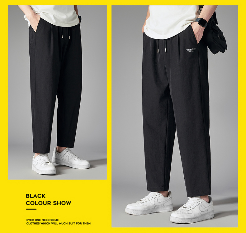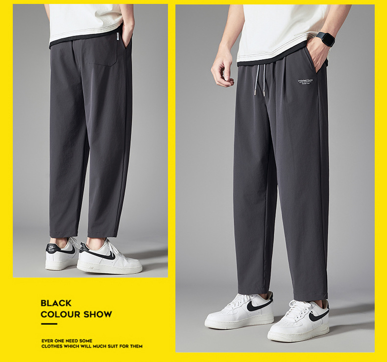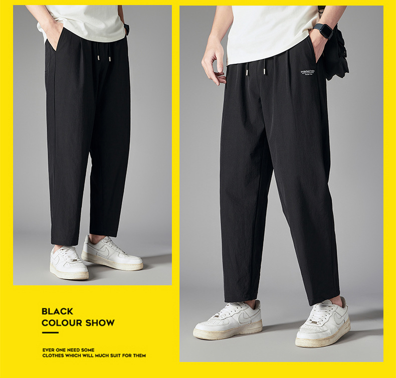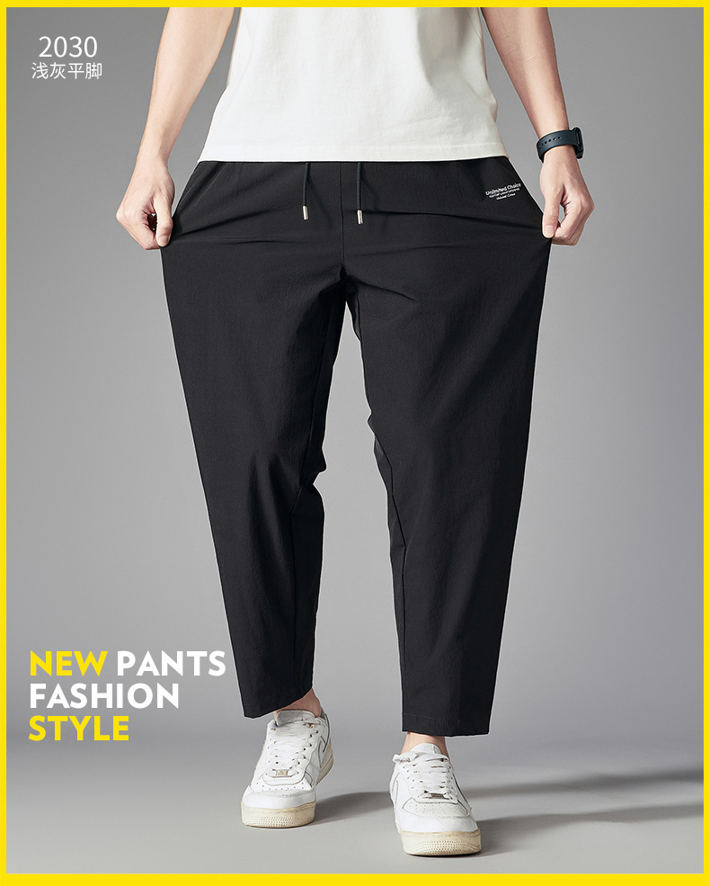 플러스 사이즈 스포츠 스트레이트 팬츠 남성 여름 트렌디 한 플러스 사이즈 캐주얼 바지 뚱뚱한 플러스 사이즈 느슨한 빠른 건조 크롭 팬츠