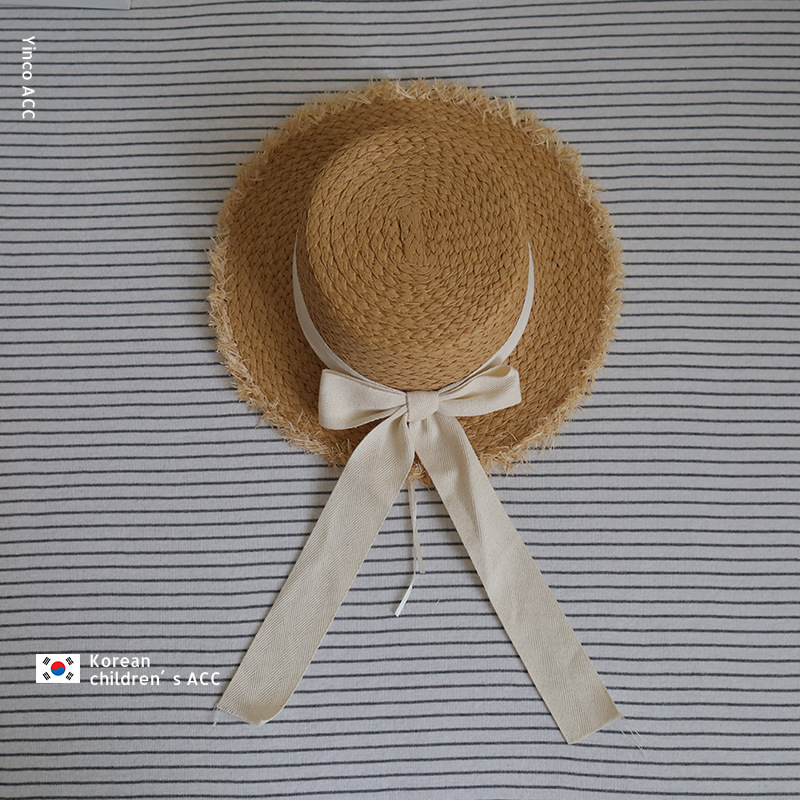 수제 라피아 어린이 밀짚 모자 여름 여행 태양 보호 여성 귀여운 패션 닳은 활스토어 가기