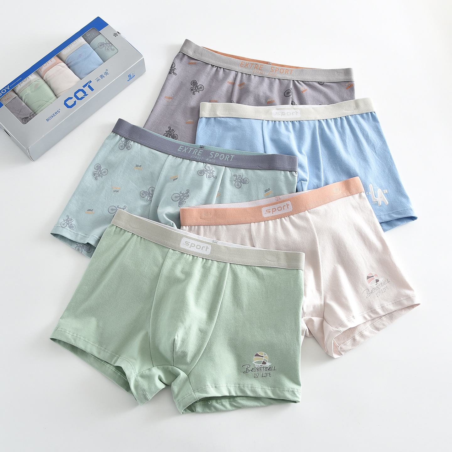 녹색 토끼 고급 소년 속옷면 십대 큰 어린이 반바지 복서 어린이 속옷 중학교 및 고등학교 면화 클래스 A스토어 가기