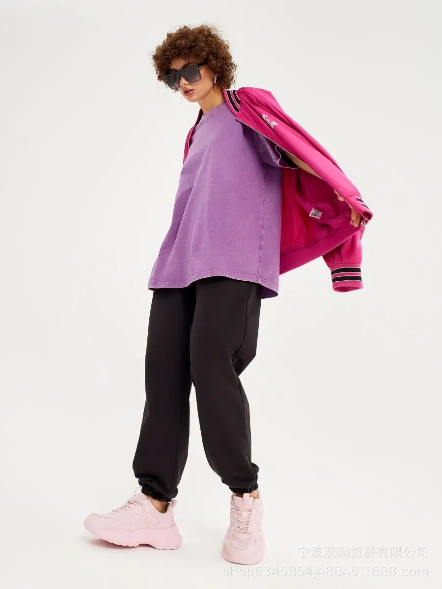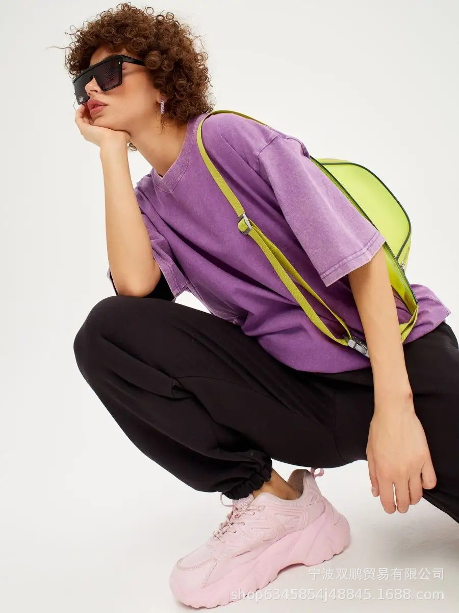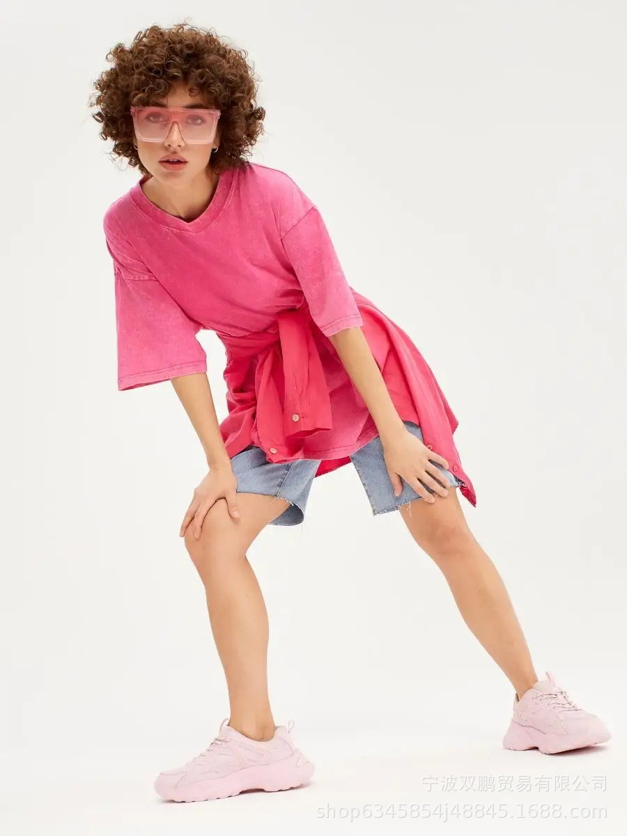2025 봄과 여름 새로운 솔리드 컬러 티셔츠 여성 씻어 오래된 바틱 탑 국경 유럽과 미국의 뜨거운 판매 순수 코튼 반팔