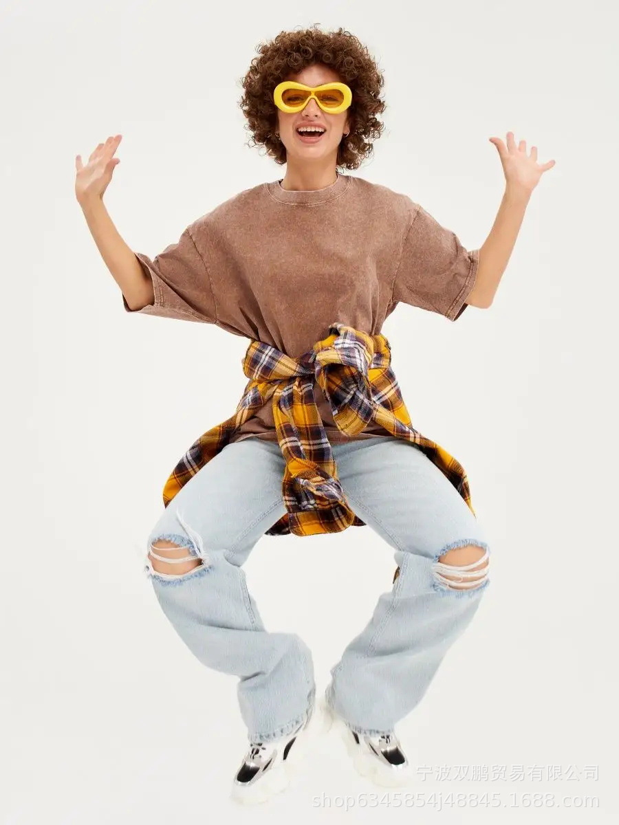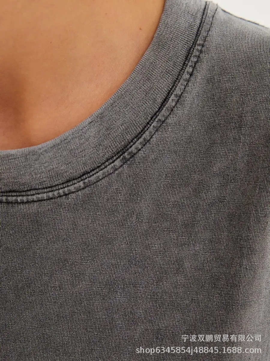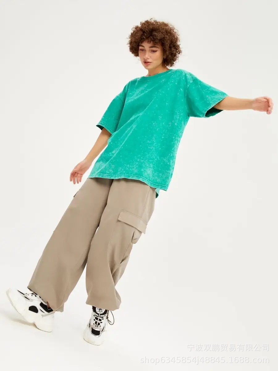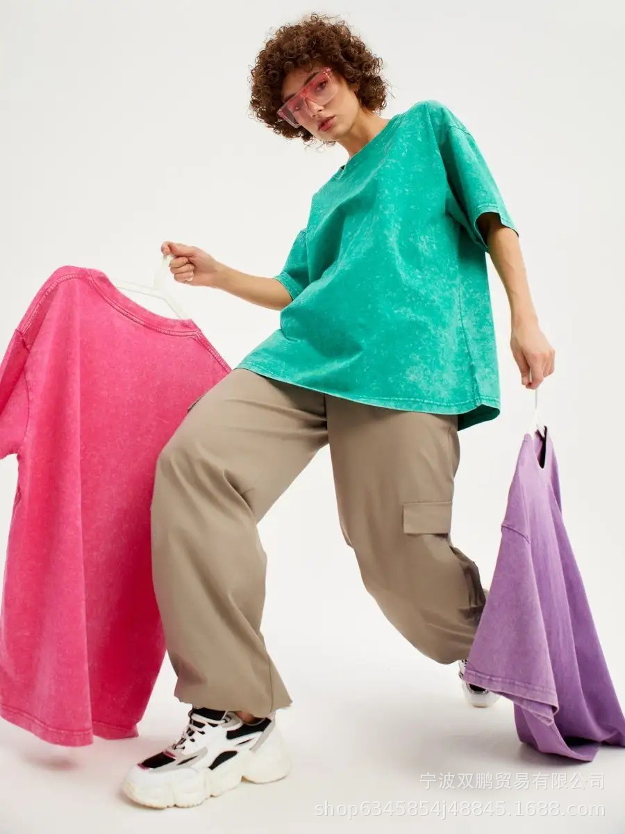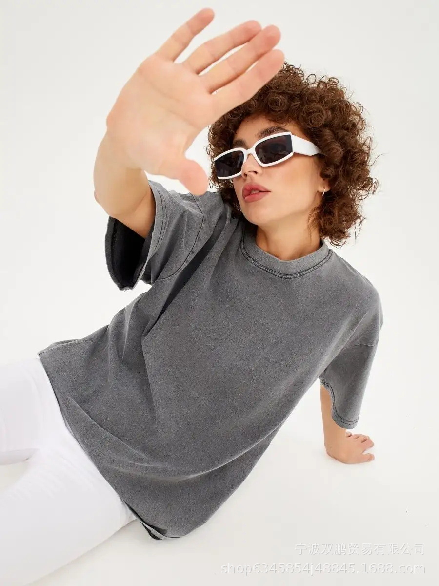 2025 봄과 여름 새로운 솔리드 컬러 티셔츠 여성 씻어 오래된 바틱 탑 국경 유럽과 미국의 뜨거운 판매 순수 코튼 반팔스토어 가기