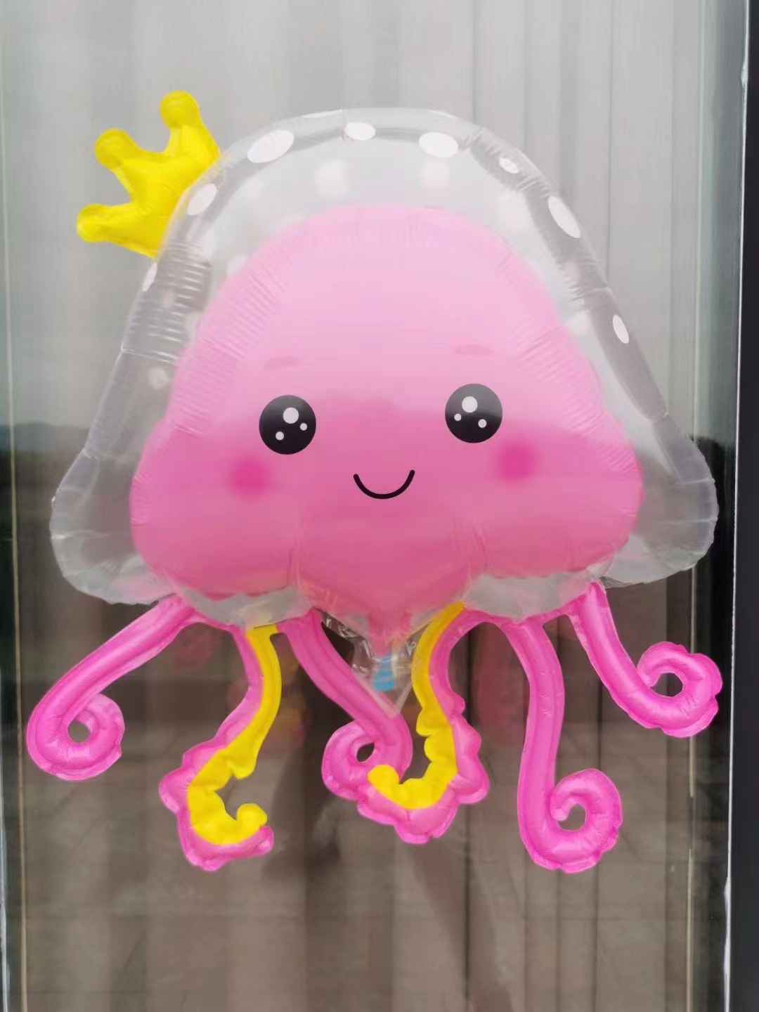 2024 크라운 해파리 풍선 만화 모양의 더블 레이어 떠있는 빈 문어 어린이 날 장식 보보 알루미늄 필름 볼